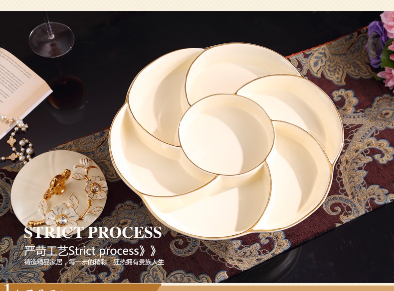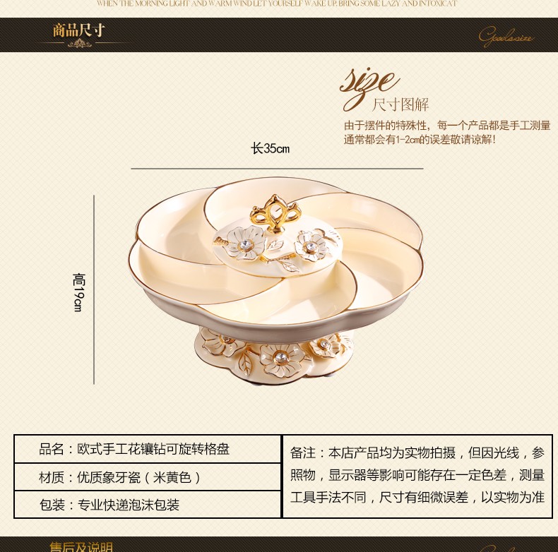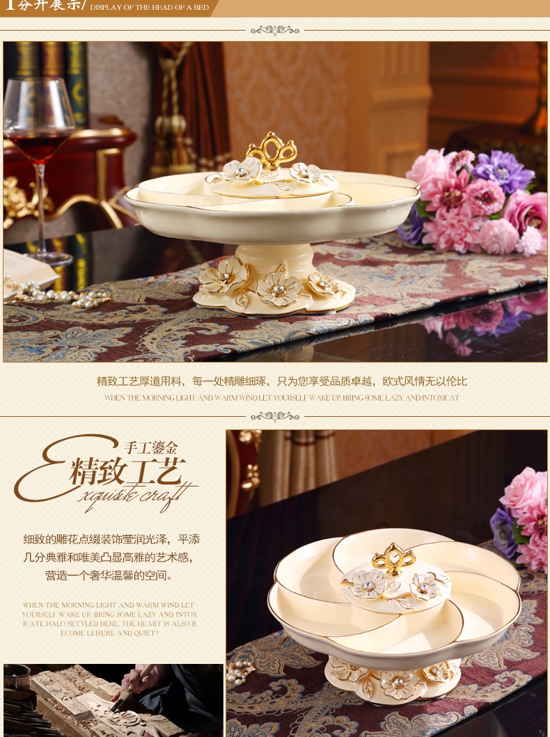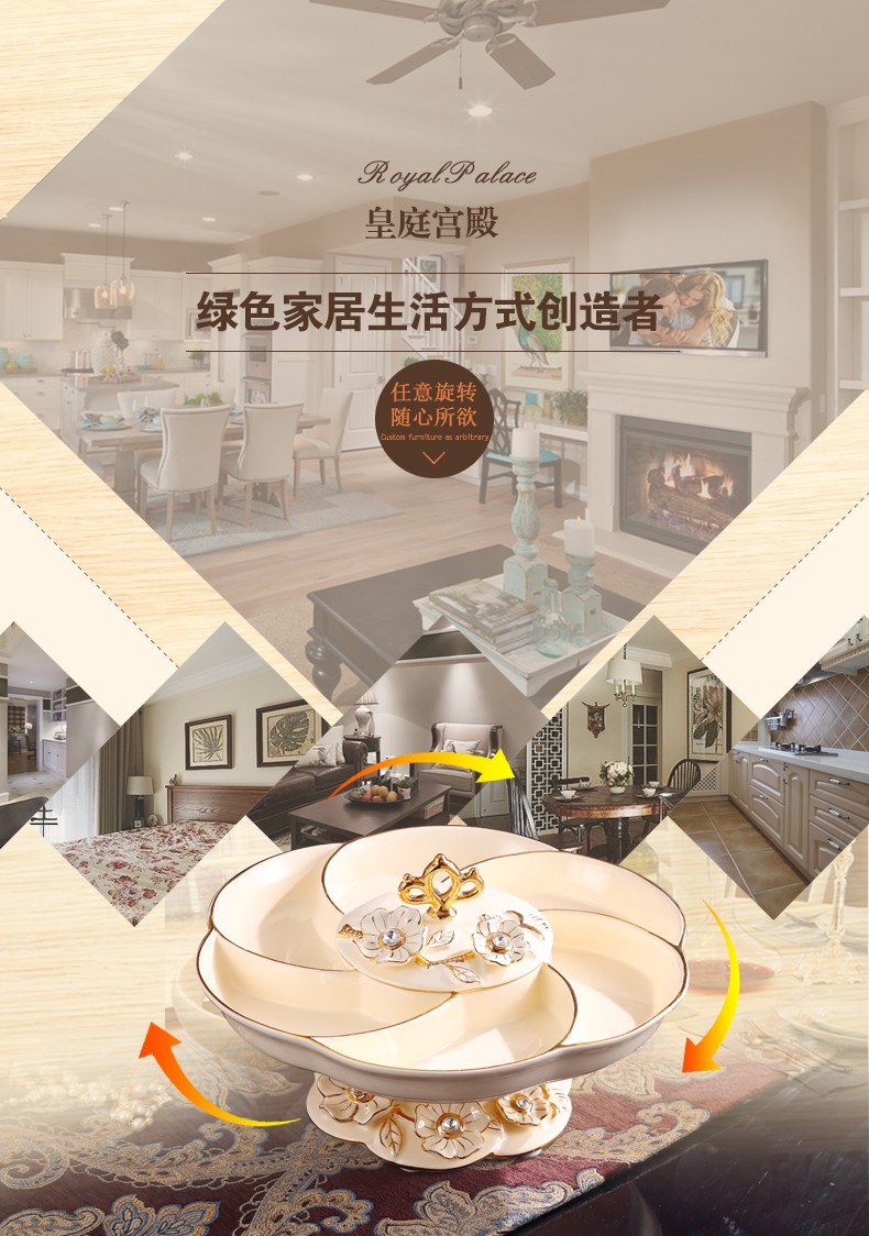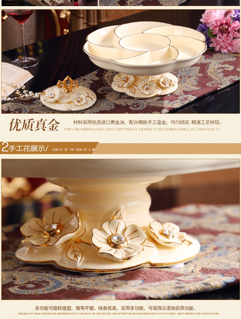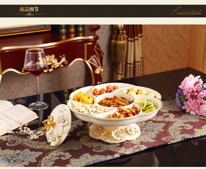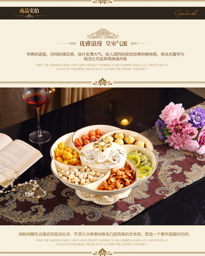 新款上市分格带盖360度旋转创意新年结婚庆糖果干果欧式陶瓷果盘