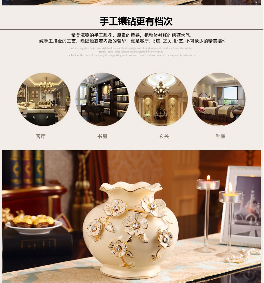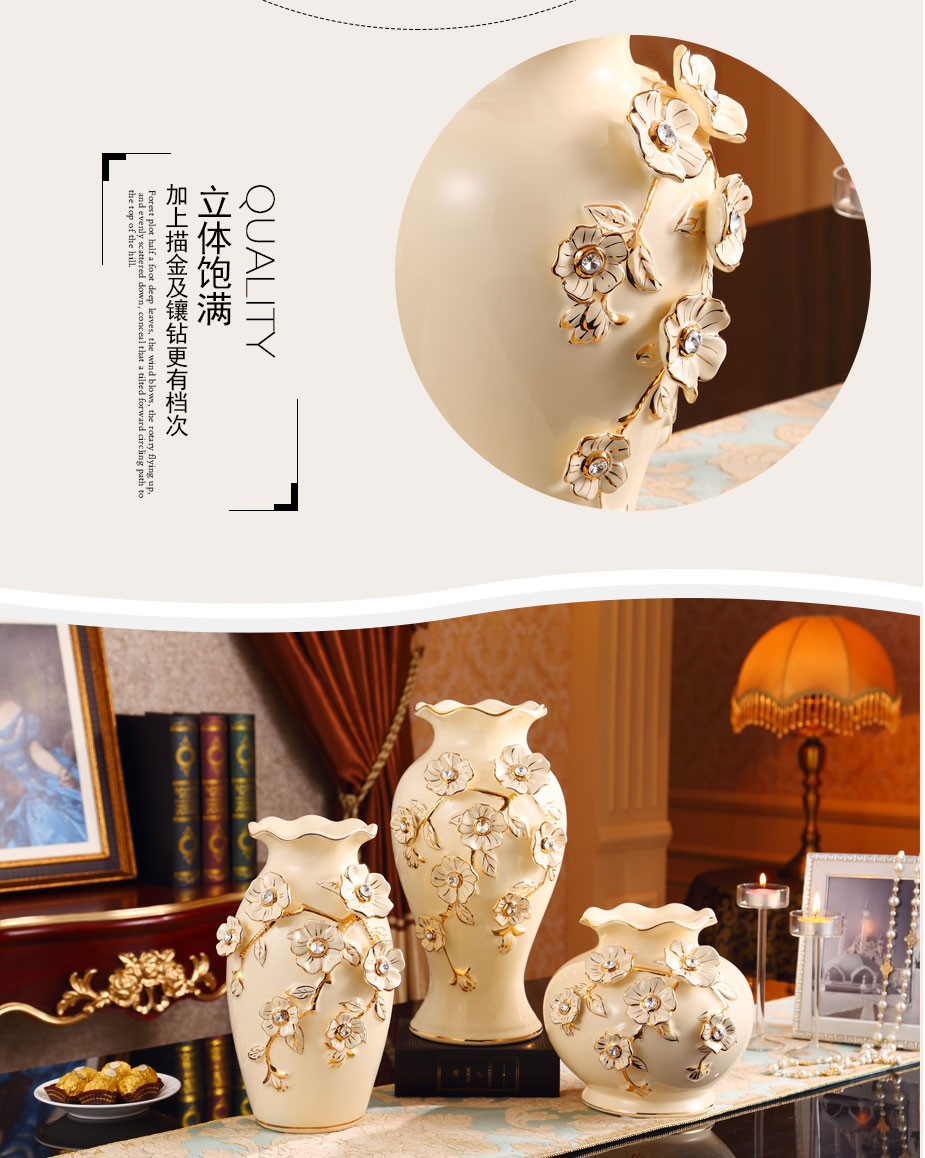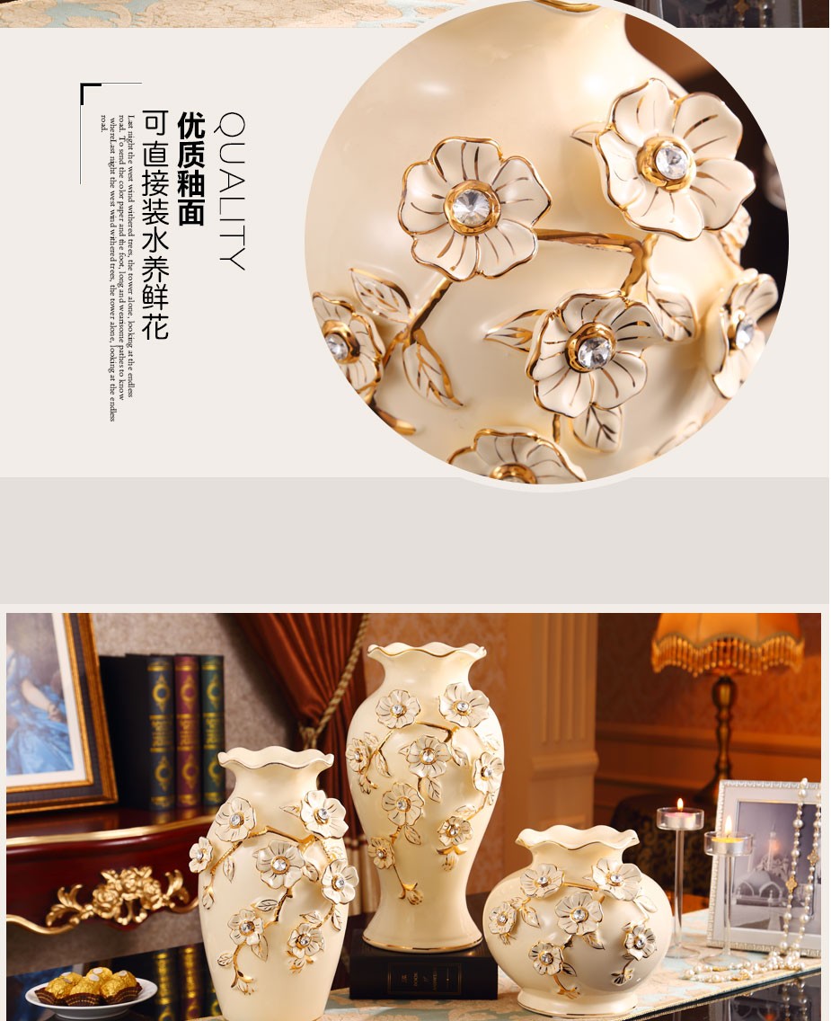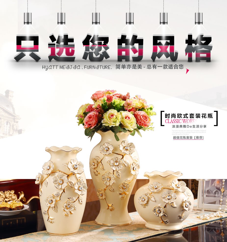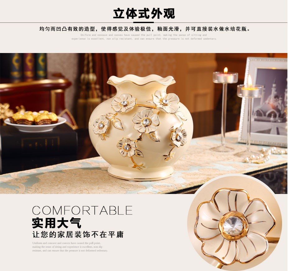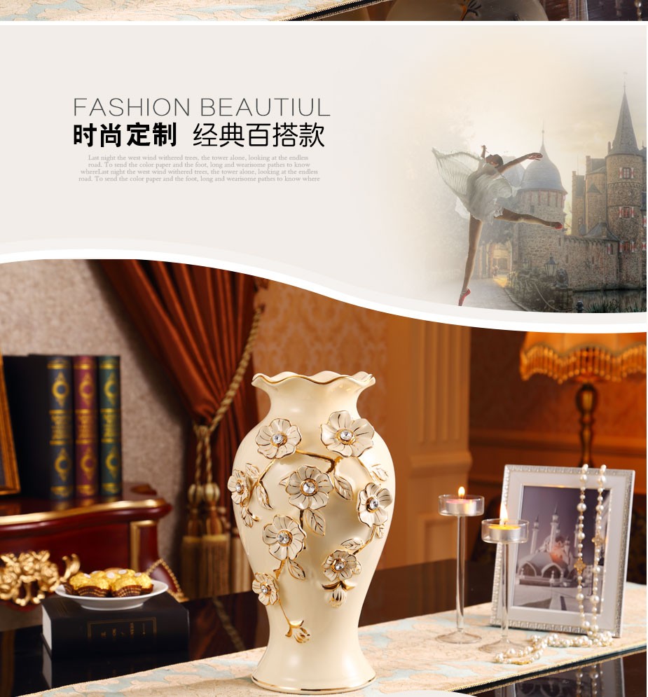 欧式陶瓷花瓶 客厅装饰品陶瓷插花器 婚庆工艺品家居摆件