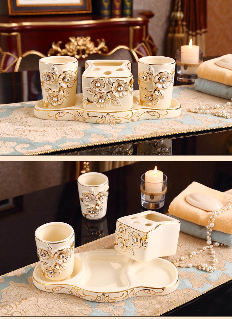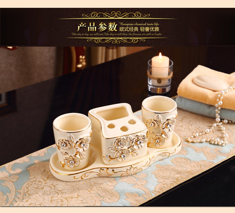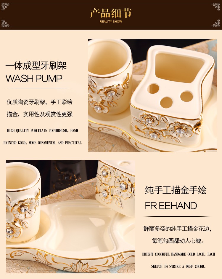 浴室四件套 欧式高档欧式陶瓷卫浴套装创意浴室洗漱用品新婚礼物