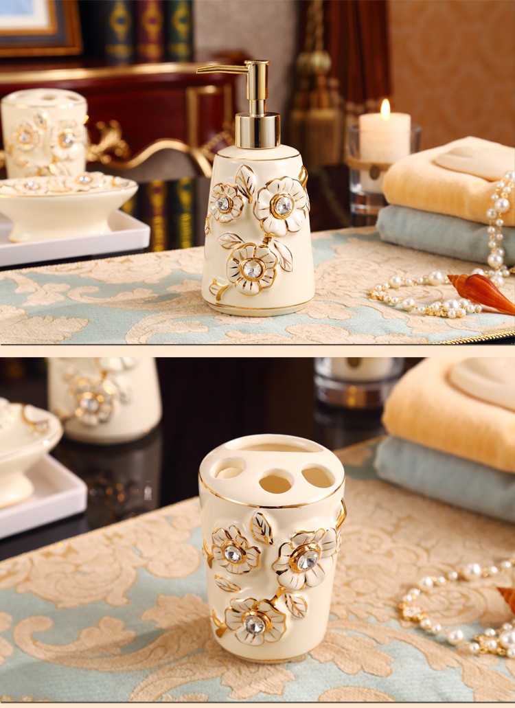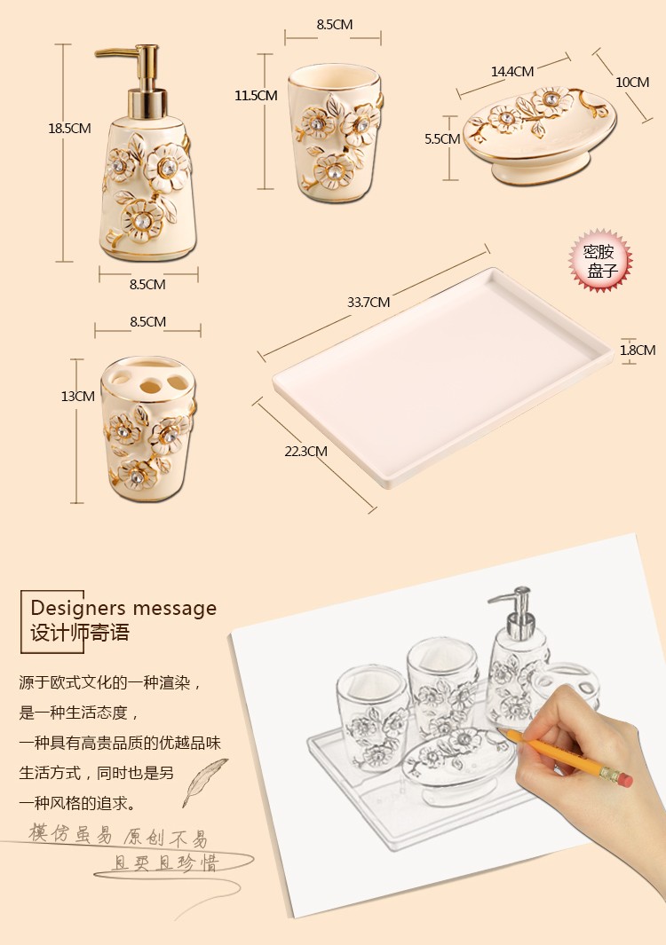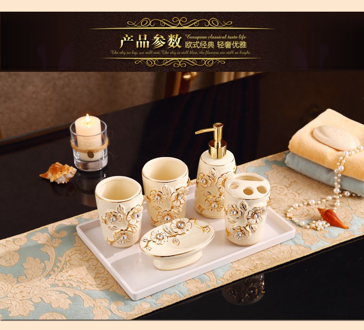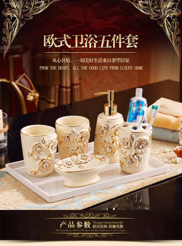 浴室五件套 欧式高档欧式陶瓷卫浴套装创意浴室洗漱用品新婚礼物