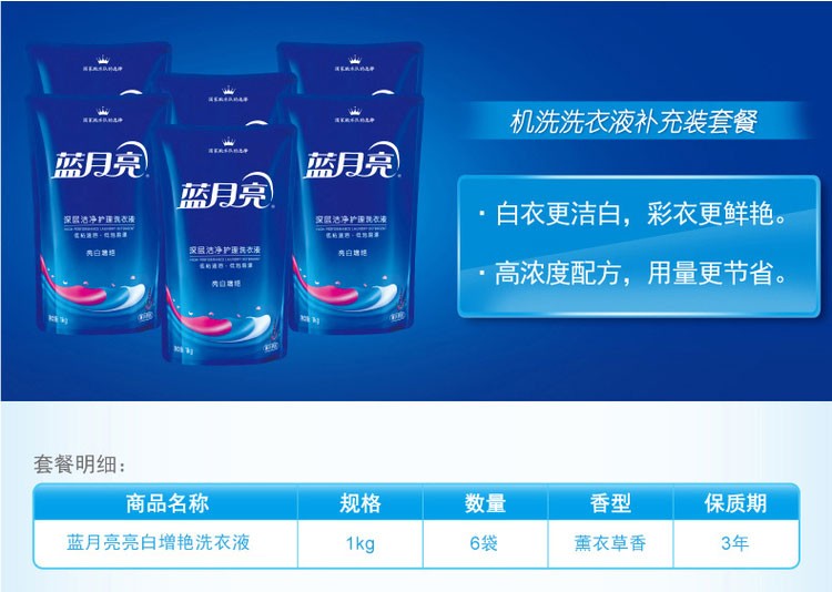 蓝月亮洗衣液1kgx6袋 薰衣草家庭补充装官方正品包邮