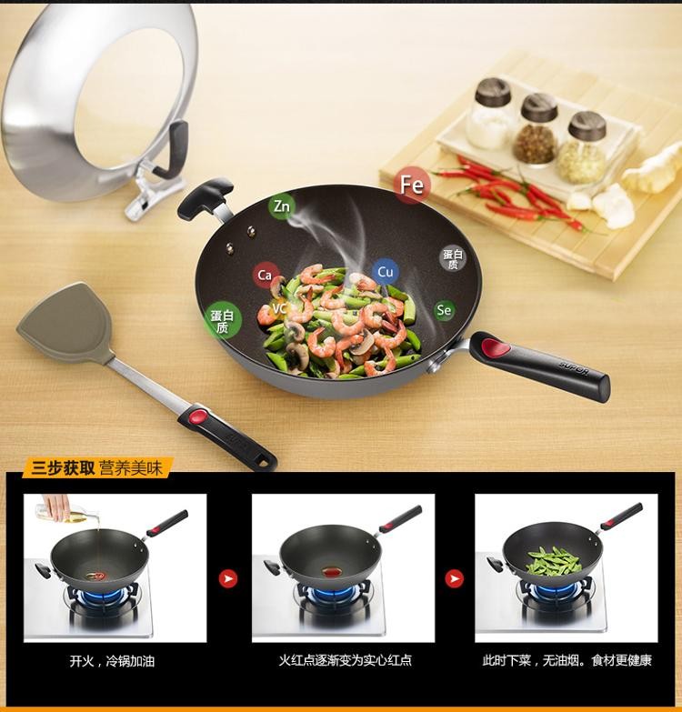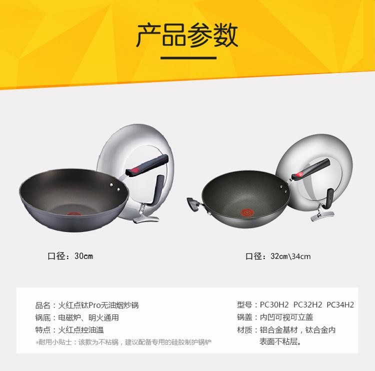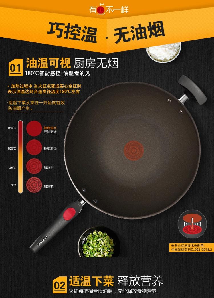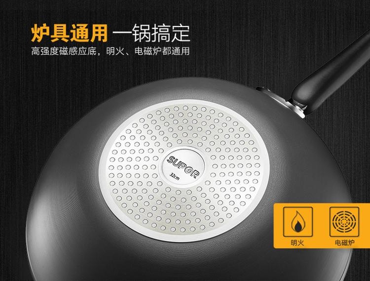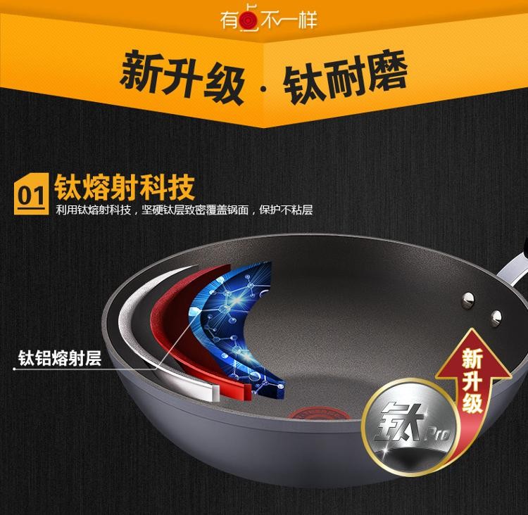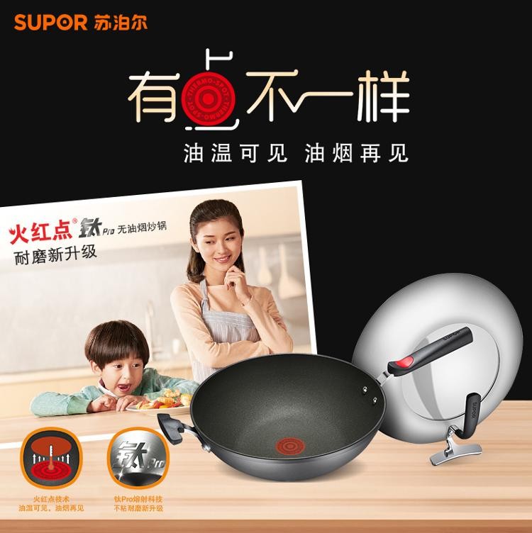苏泊尔(SUPOR)火红点3第三代钛Pro无油烟不粘锅炒锅PC32H2 可立