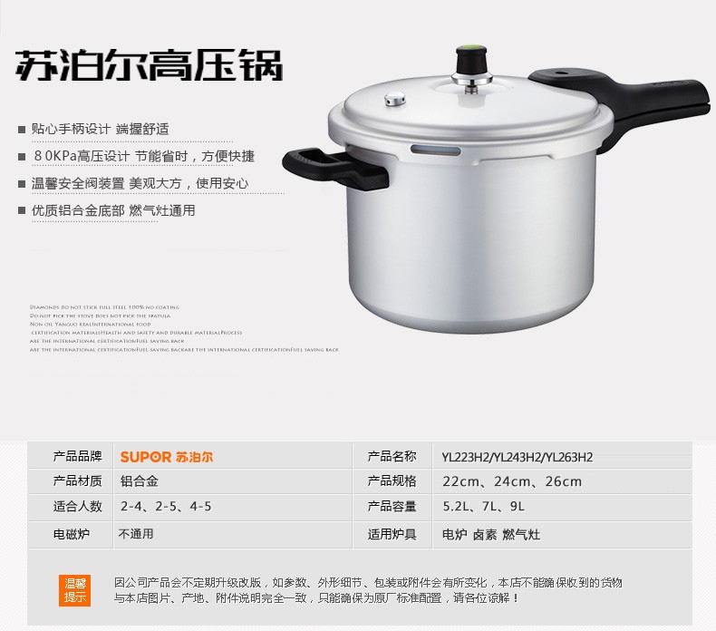 苏泊尔(SUPOR)好帮手压力锅 直行YL243H2