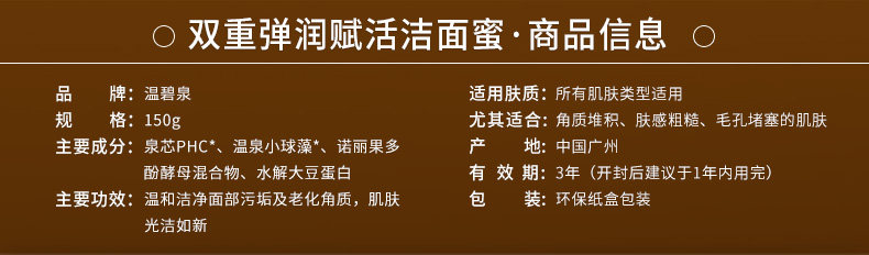 温碧泉专柜正品双重弹润赋活洁面蜜150g 清洁保湿洁面乳洗面奶
