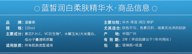 温碧泉专柜正品蓝皙润白柔肤精华水135ml 美白滋养保湿补水爽肤水