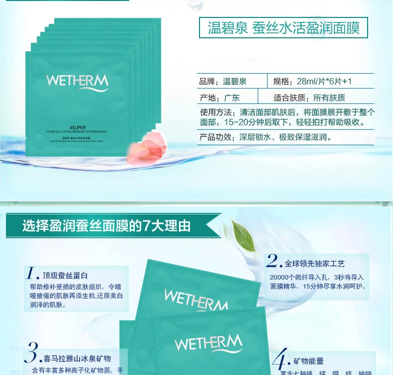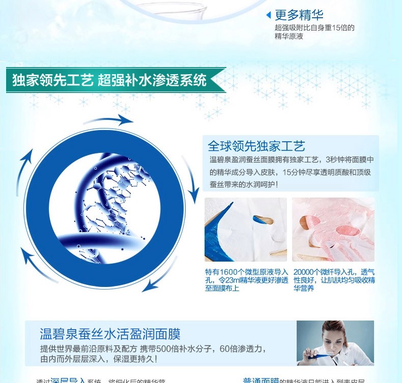 温碧泉蚕丝水活盈润隐形面膜贴7片补水保湿收毛孔控油清洁