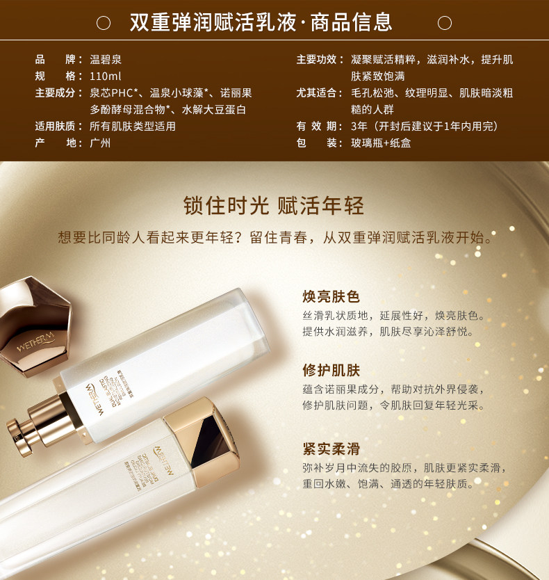 温碧泉双重弹润赋活精华乳液女保湿补水滋润紧致抗皱护肤正品面霜