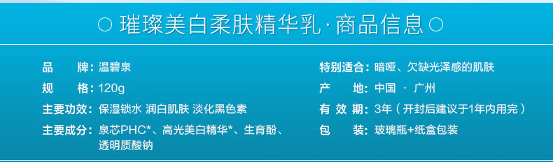 温碧泉专柜正品璀璨美白柔肤精华乳120g 美白保湿补水 去黄气乳液