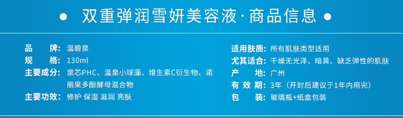 温碧泉专柜正品双重弹润雪妍美容液130ml 补水保湿水精华水爽肤水