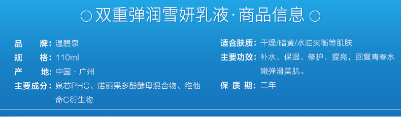温碧泉专柜正品双重弹润雪妍乳液110ml 滋养保湿补水紧致护肤