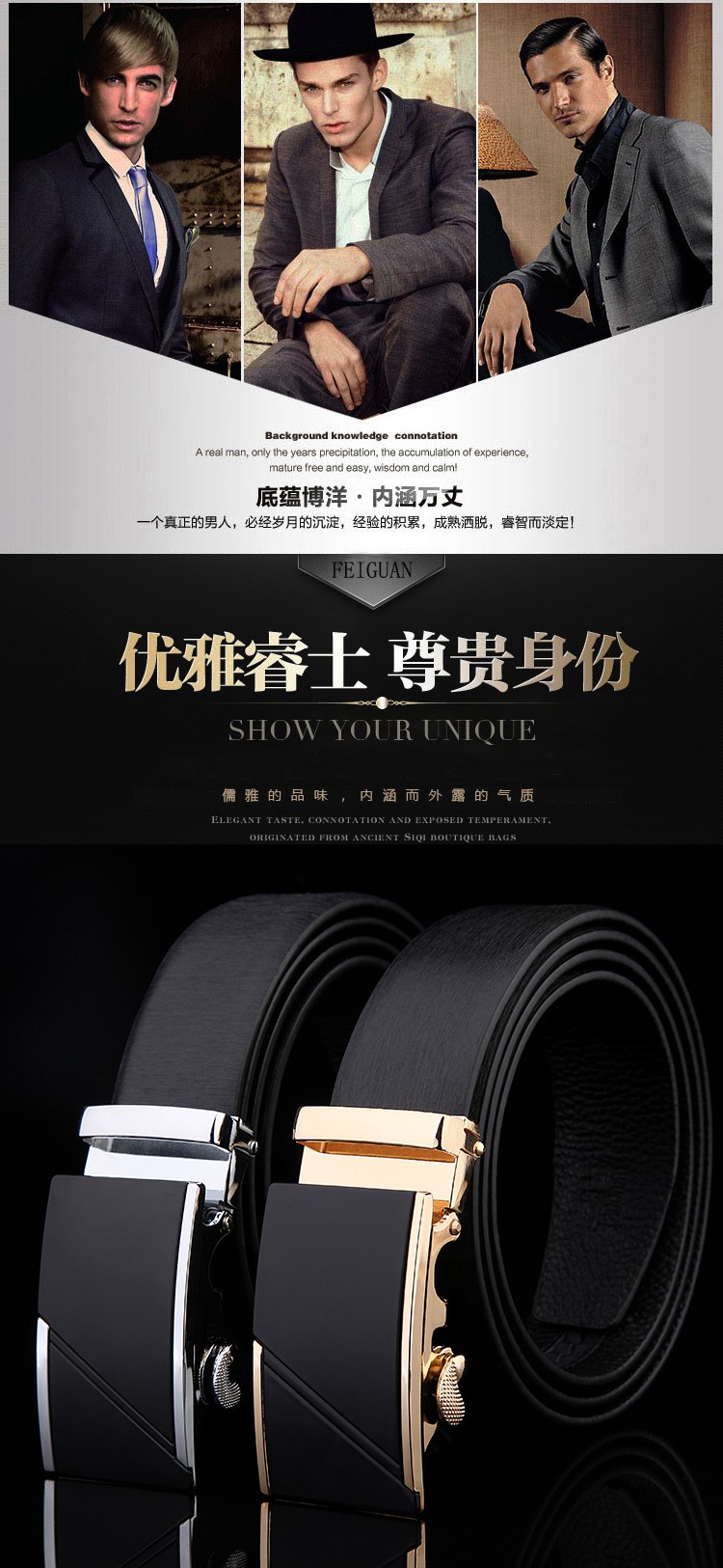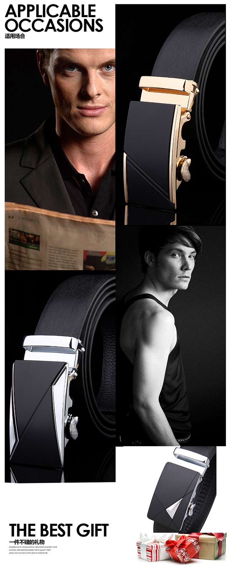 男士头层牛皮自动扣皮带