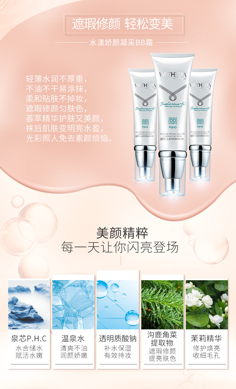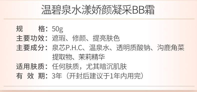 温碧泉水漾娇颜凝采BB霜50g裸妆遮瑕强白皙保湿隔离霜正品女粉底