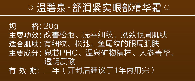 温碧泉舒润紧实眼部精华霜20g淡化细纹去黑眼圈紧致眼袋保湿眼霜