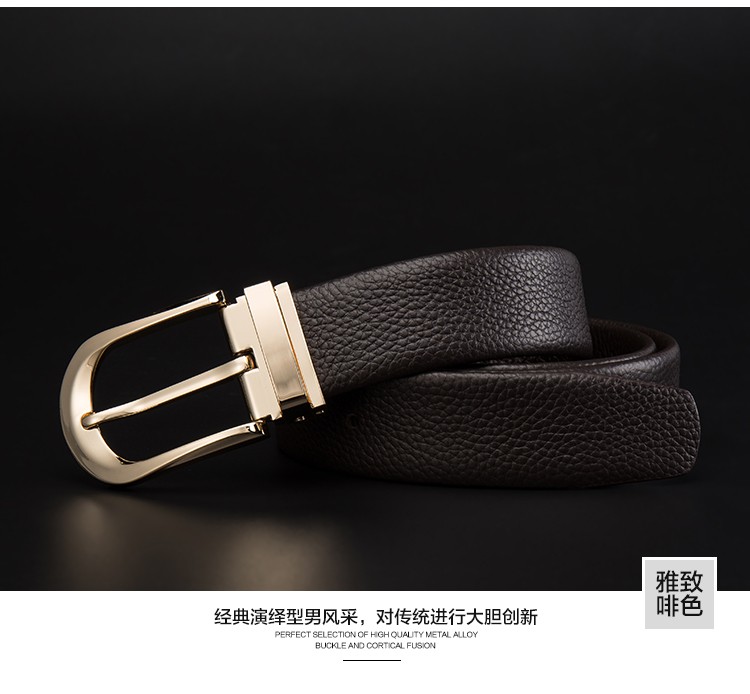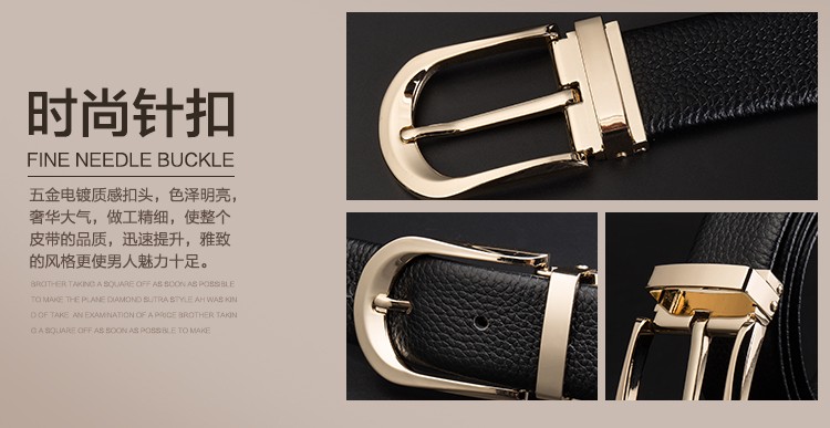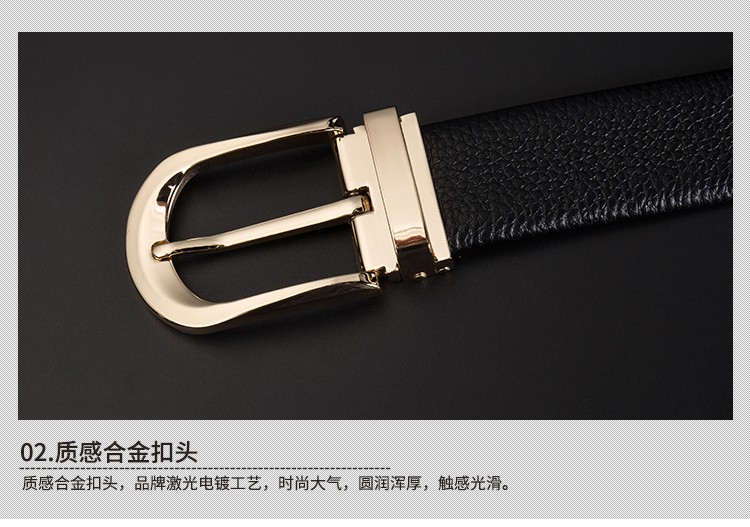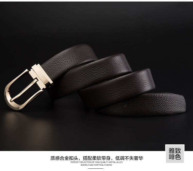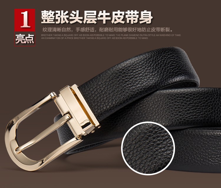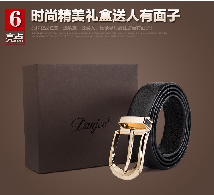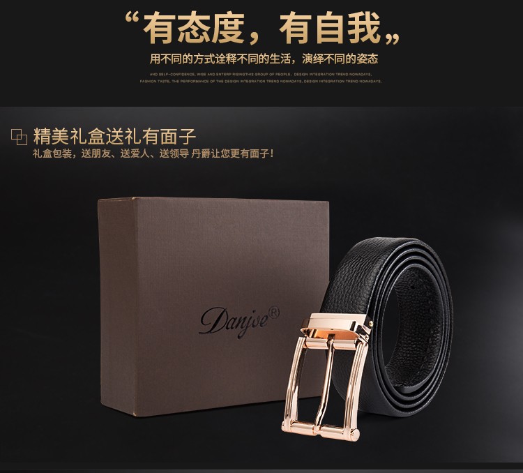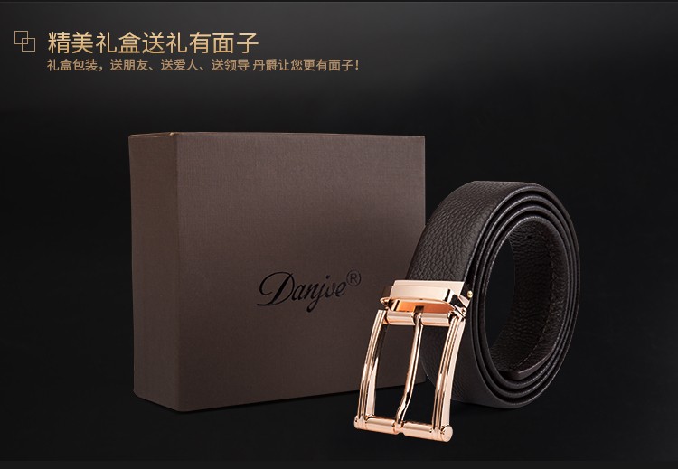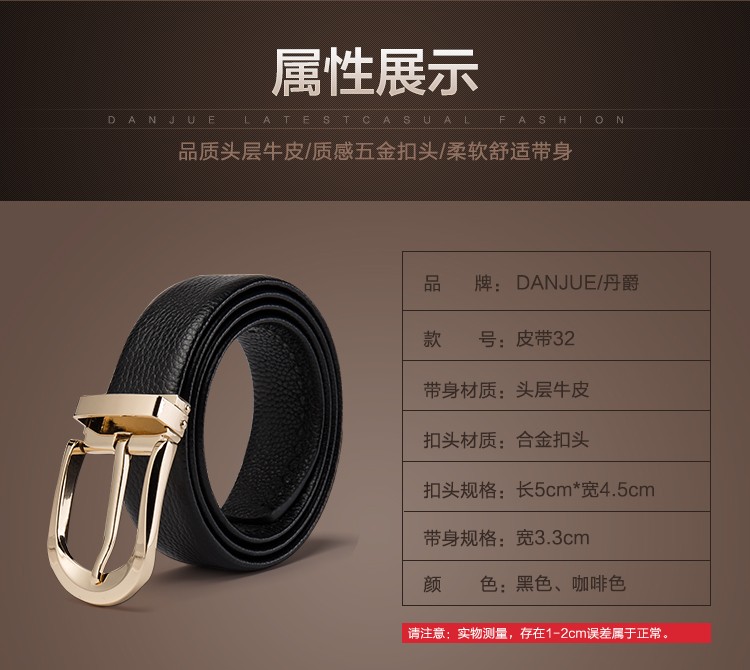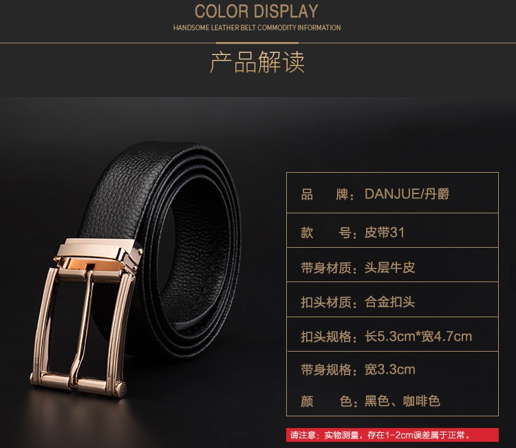 丹爵(DANJUE) 商务休闲男士针扣皮带 头层牛皮腰带 时尚扣头男腰带 皮带31/32