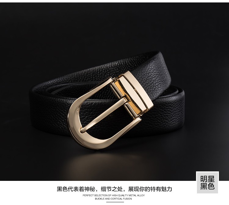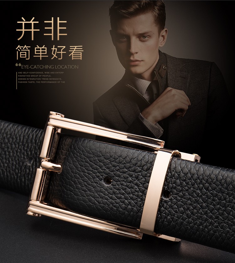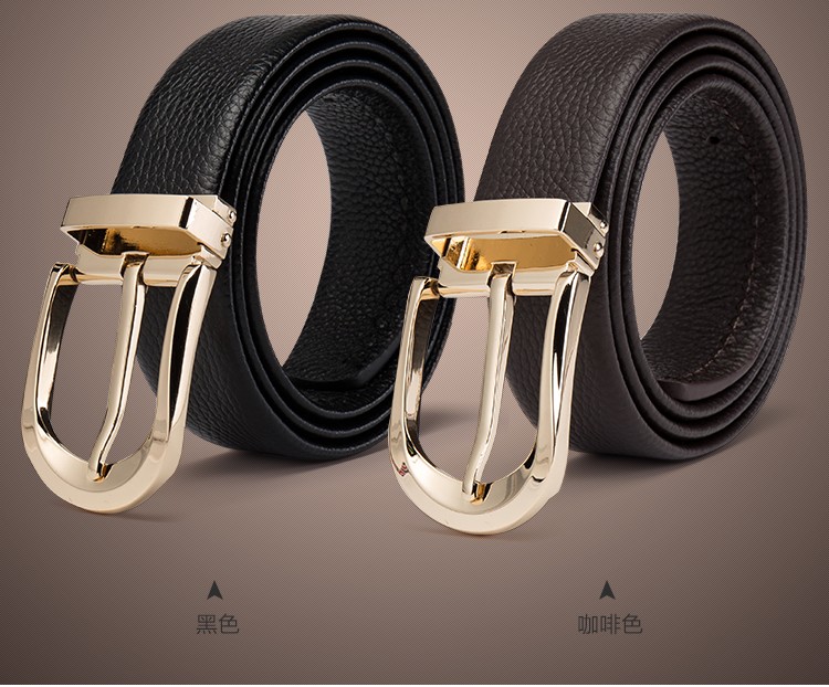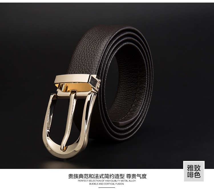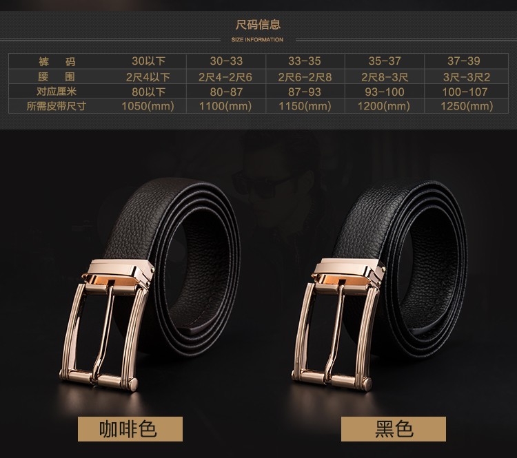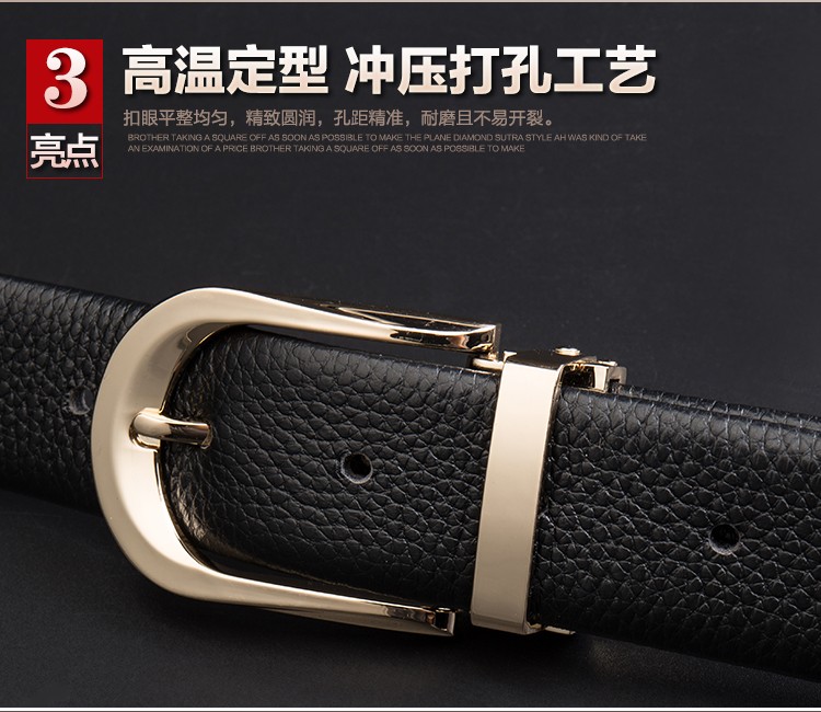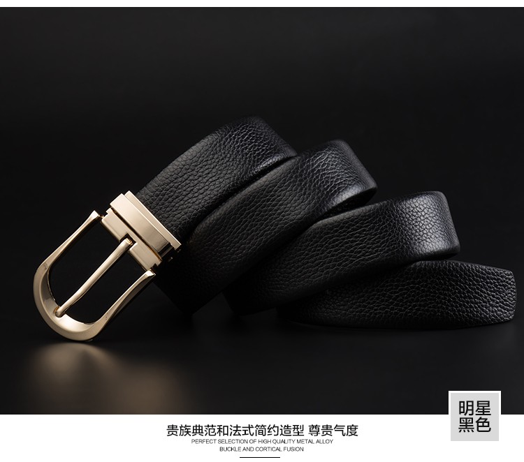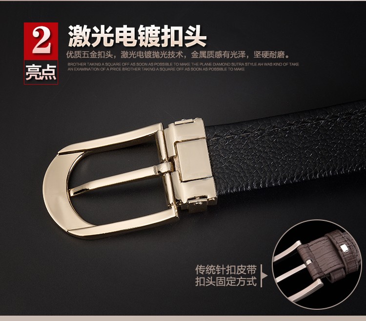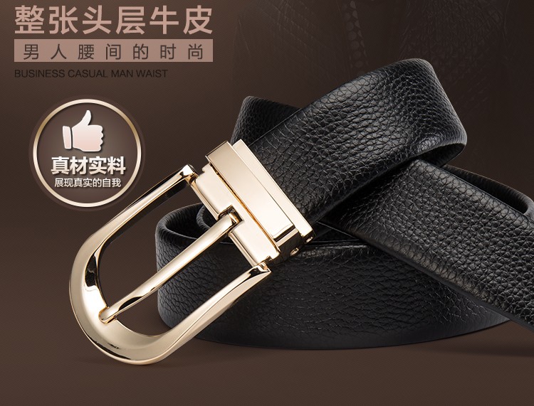 丹爵(DANJUE) 商务休闲男士针扣皮带 头层牛皮腰带 时尚扣头男腰带 皮带31/32
