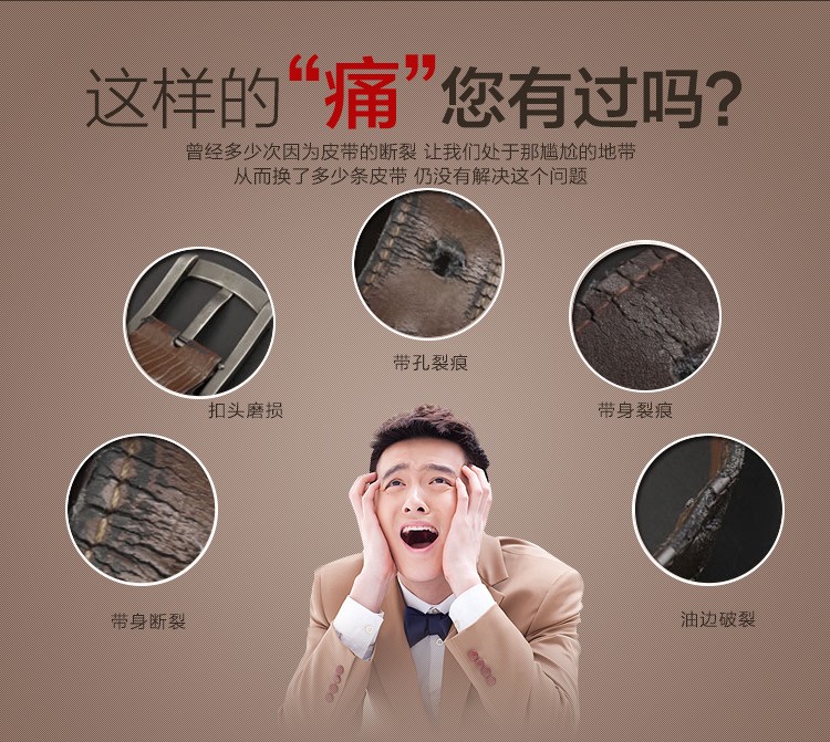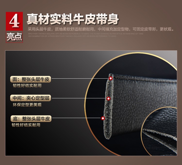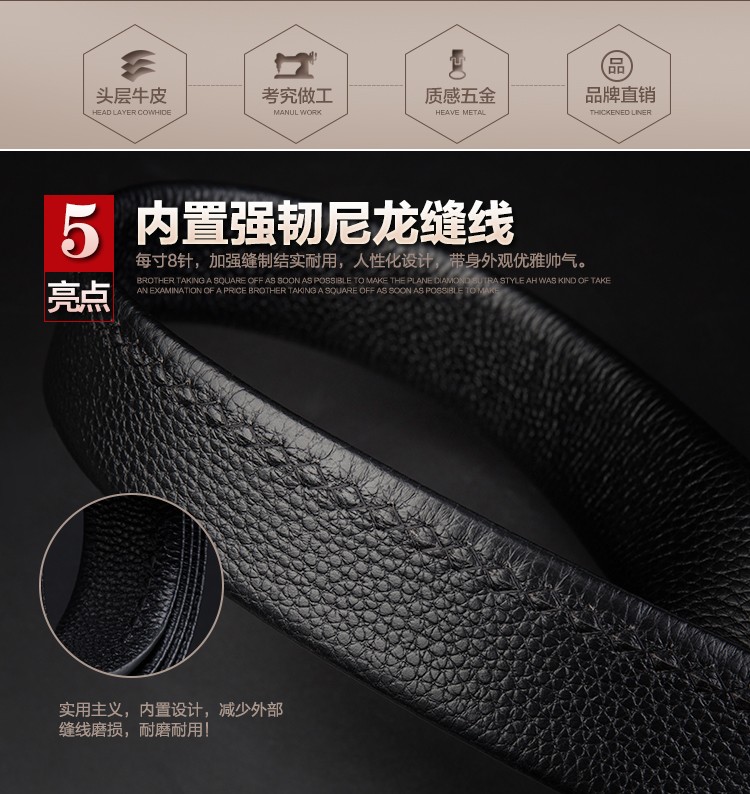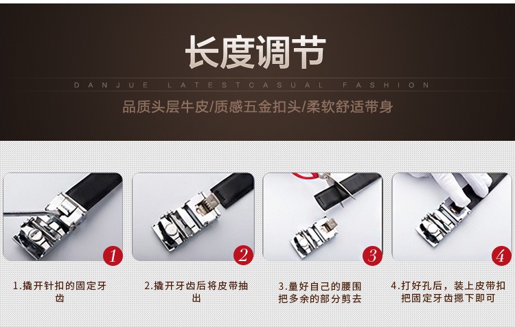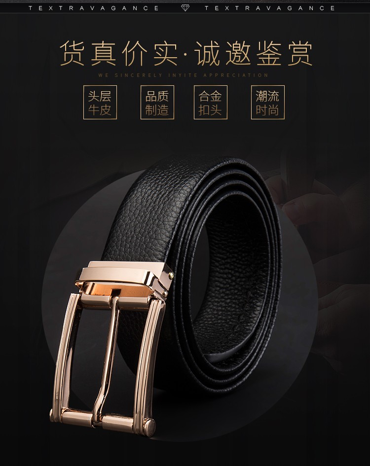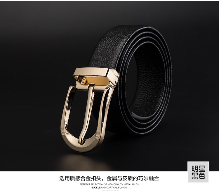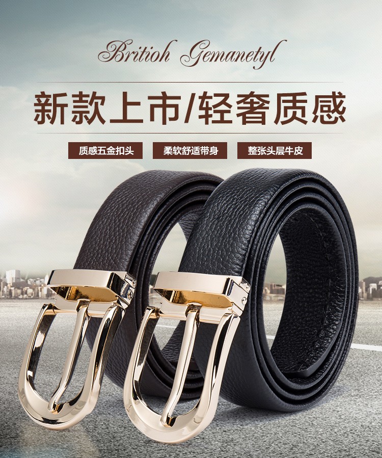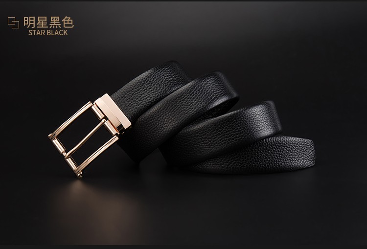 丹爵(DANJUE) 商务休闲男士针扣皮带 头层牛皮腰带 时尚扣头男腰带 皮带31/32