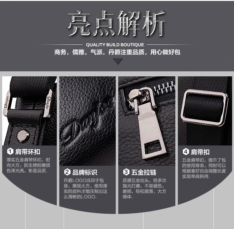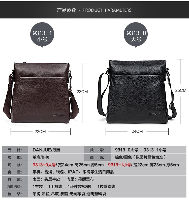 丹爵(DANJUE)男包牛皮韩版时尚单肩包商务休闲包包男式挎背包9313-0