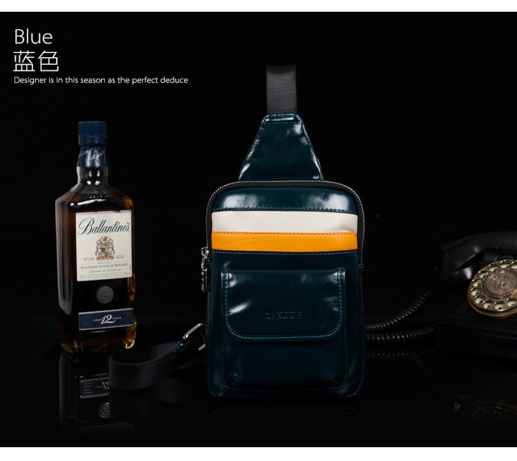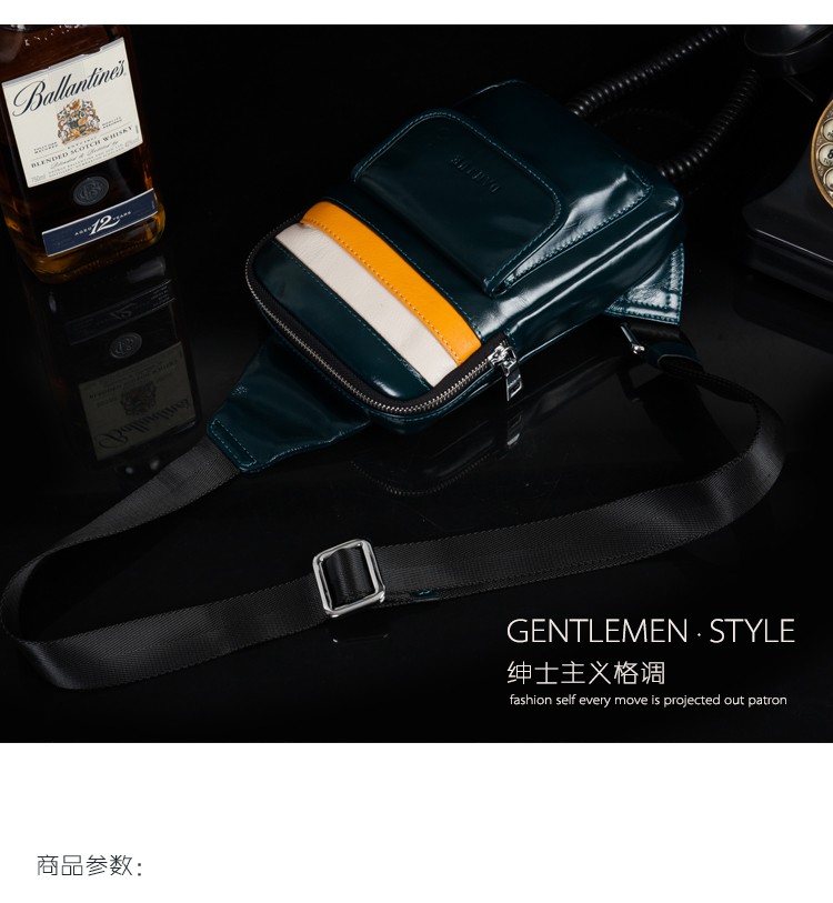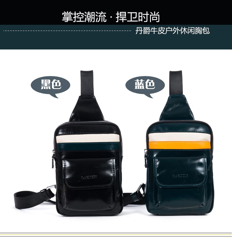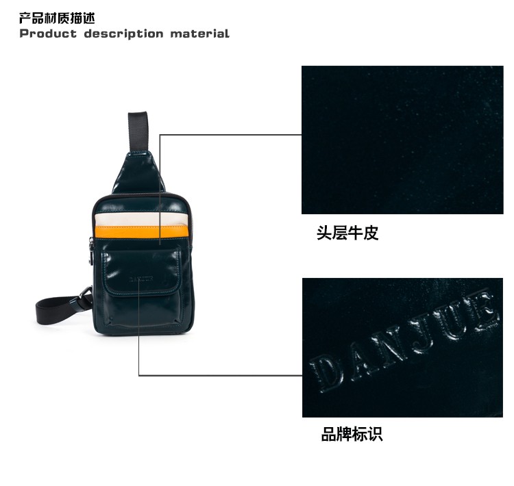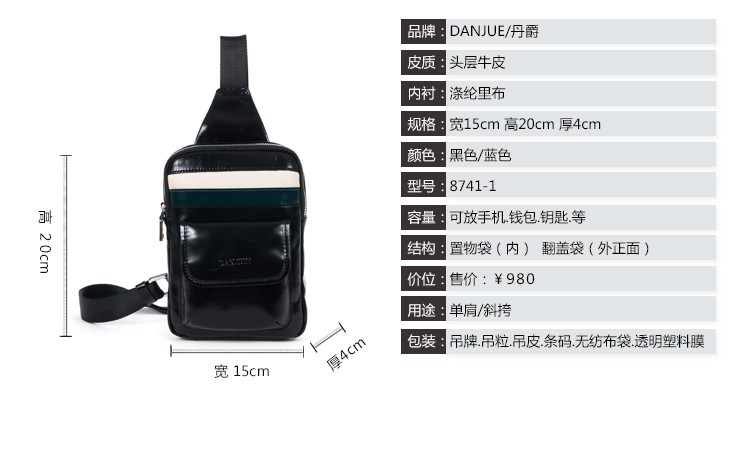 丹爵(DANJUE)头层牛皮时尚男士胸包单肩斜挎包潮酷时尚小包8741-1