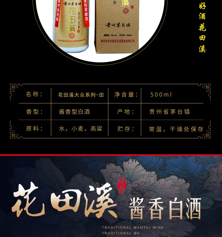 花田溪大众系列-田 酱香白酒 纯粮酿造 500ml