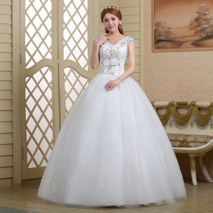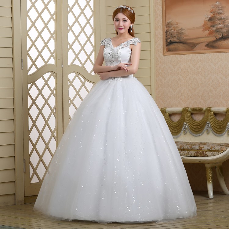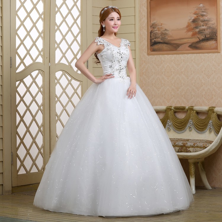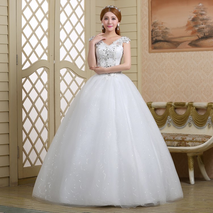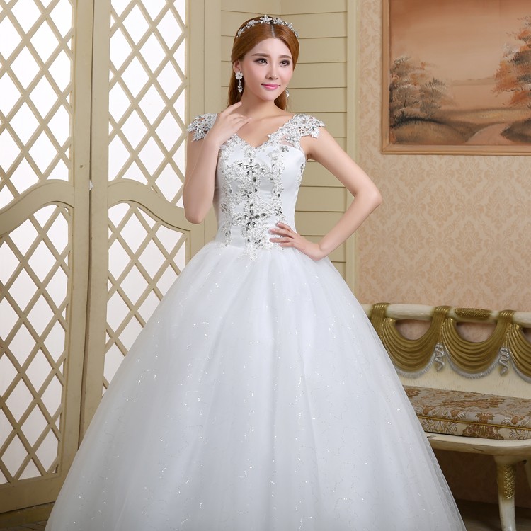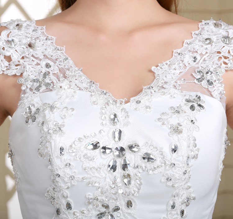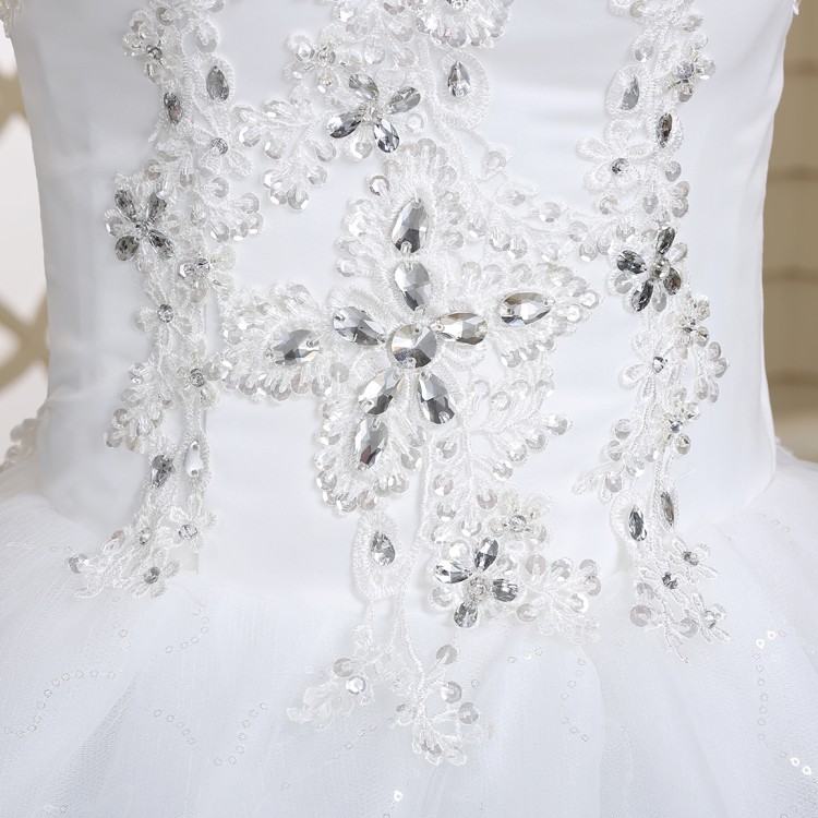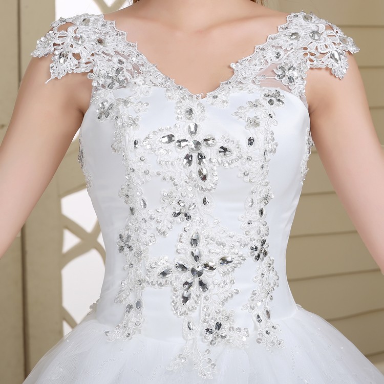新款2017高档韩版新娘 齐地镶钻双肩大码蕾丝影楼批发婚纱098