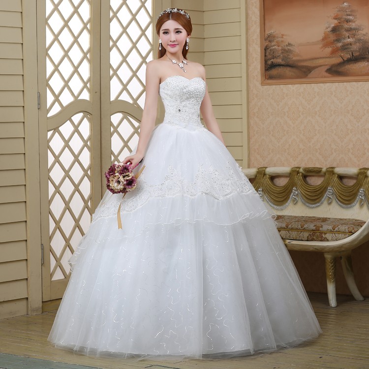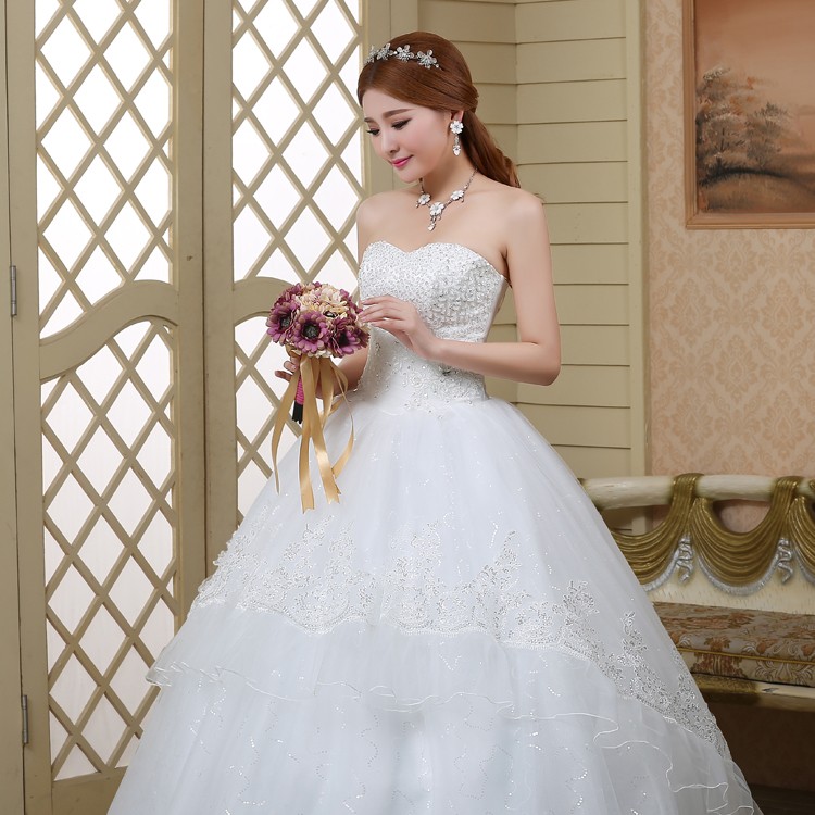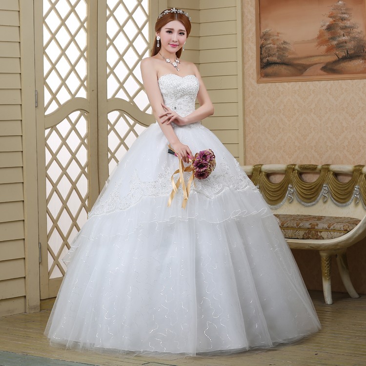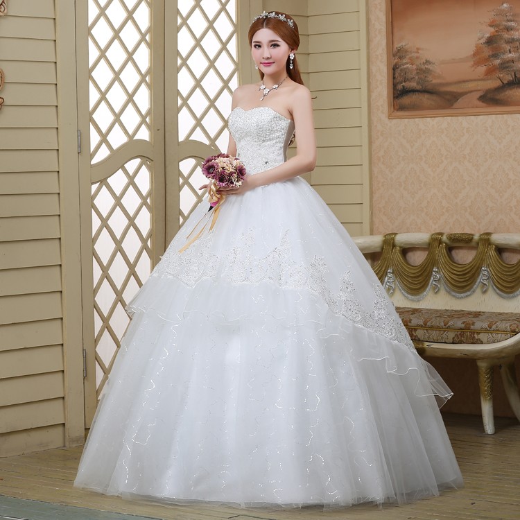 婚纱新款2017抹胸修身韩版大码新娘 简约公主蓬蓬裙结婚纱512—2