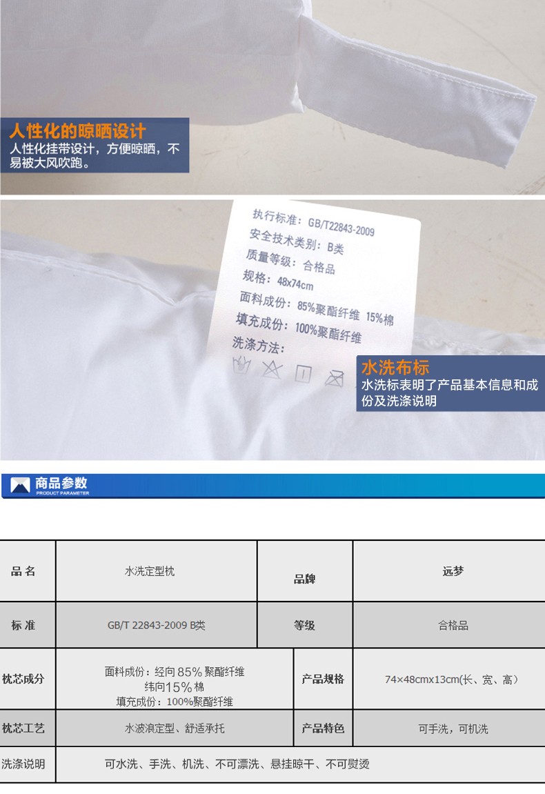 远梦家纺 枕头枕芯水洗定型枕舒适护颈 可水洗枕机洗单人枕