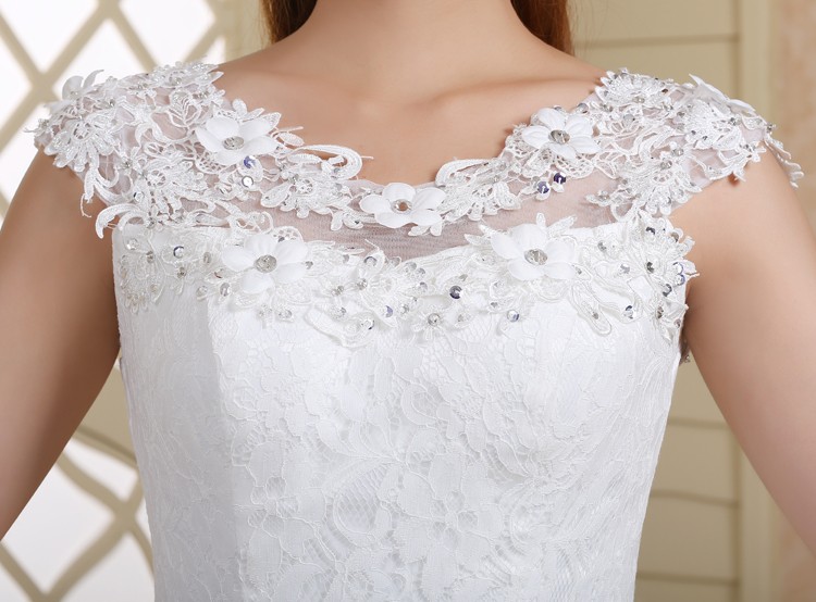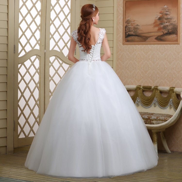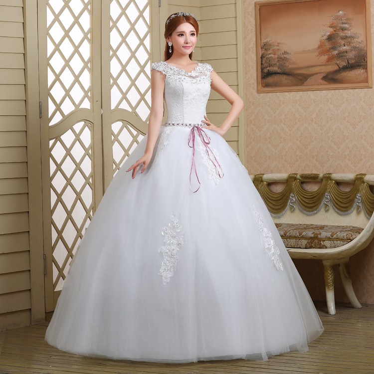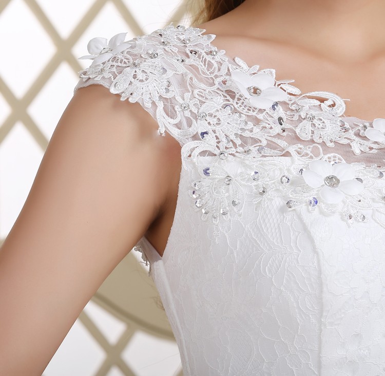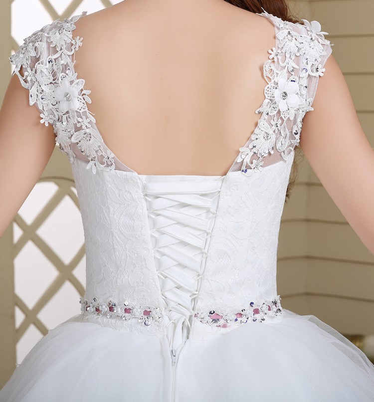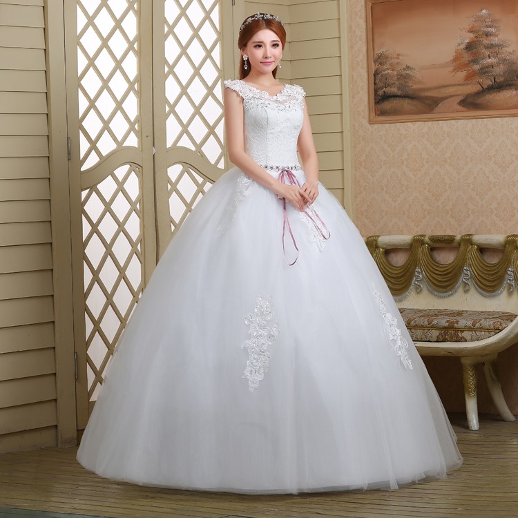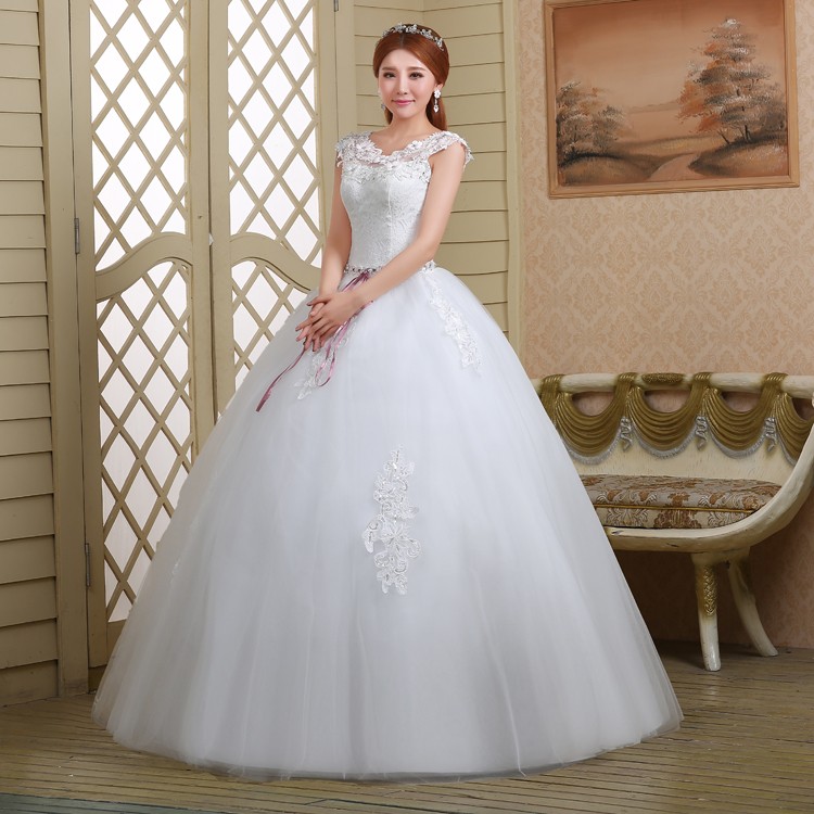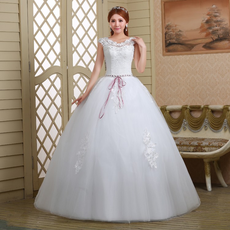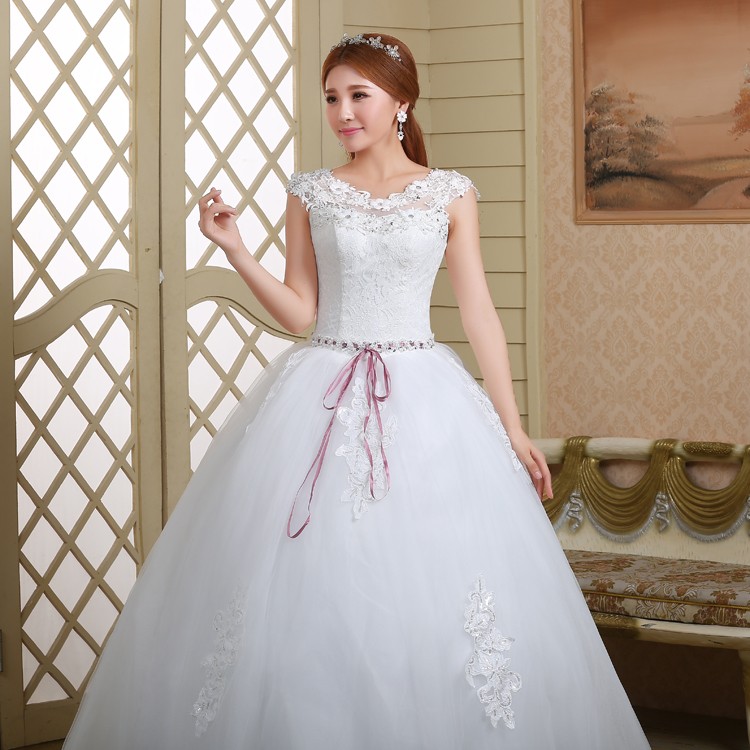 新款2017高档韩式绑带 一字肩显瘦齐地双肩大码新娘镶钻结婚纱922
