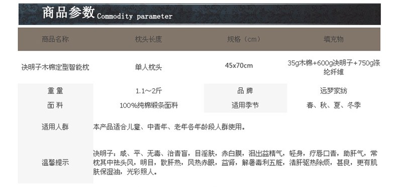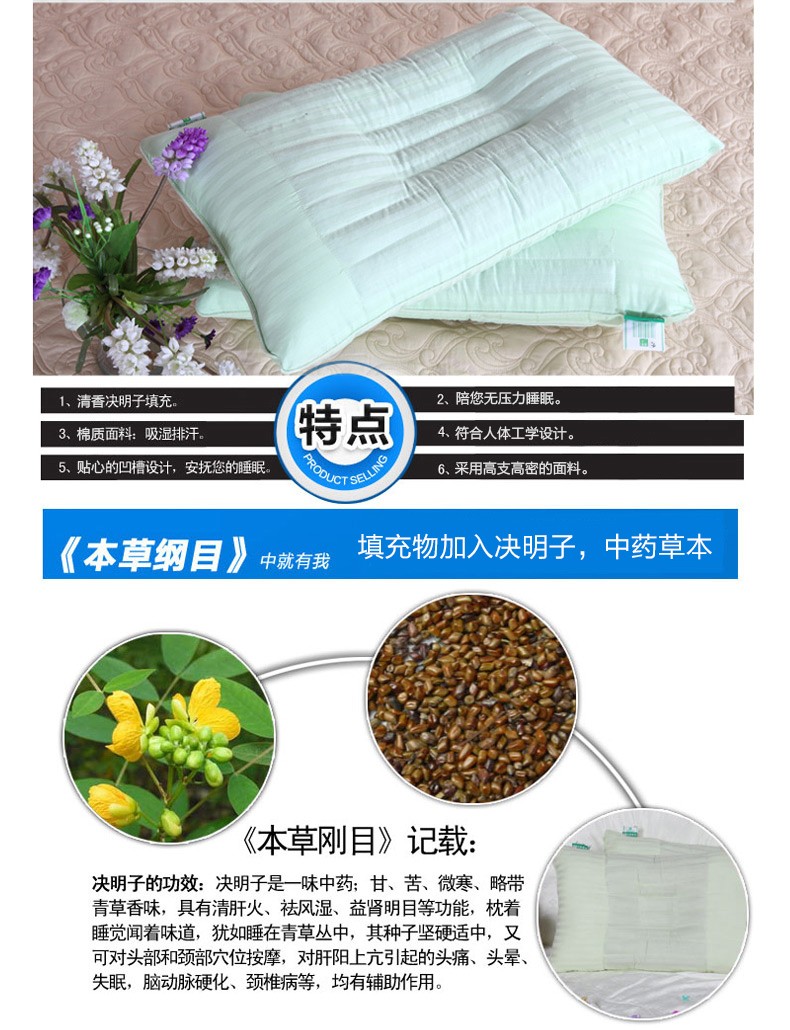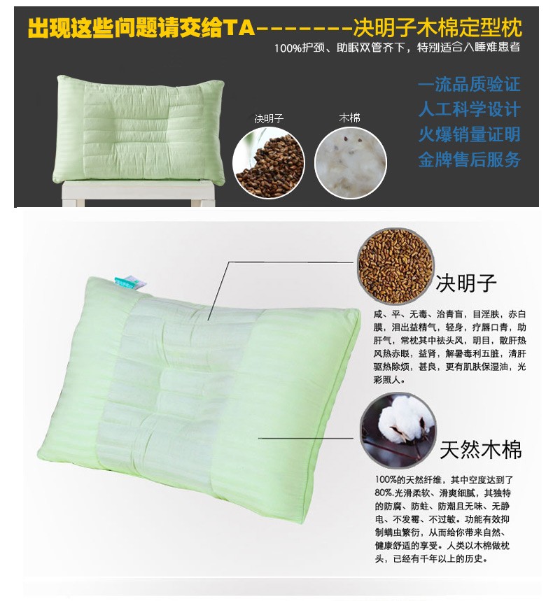 远梦枕头 决明子木棉定型枕 成人单人护颈椎枕保健枕芯