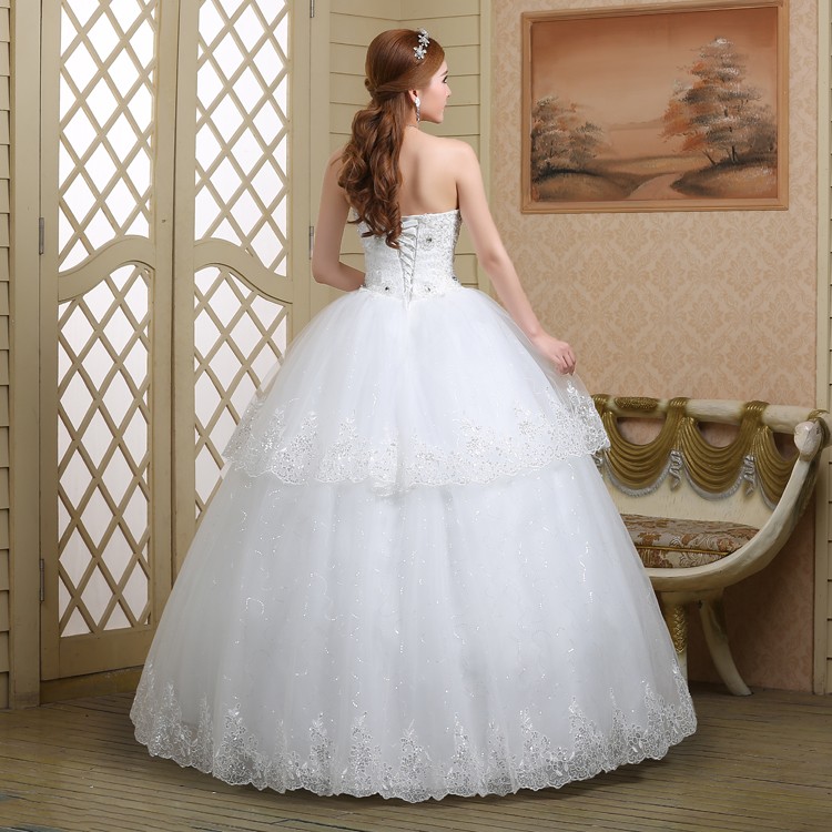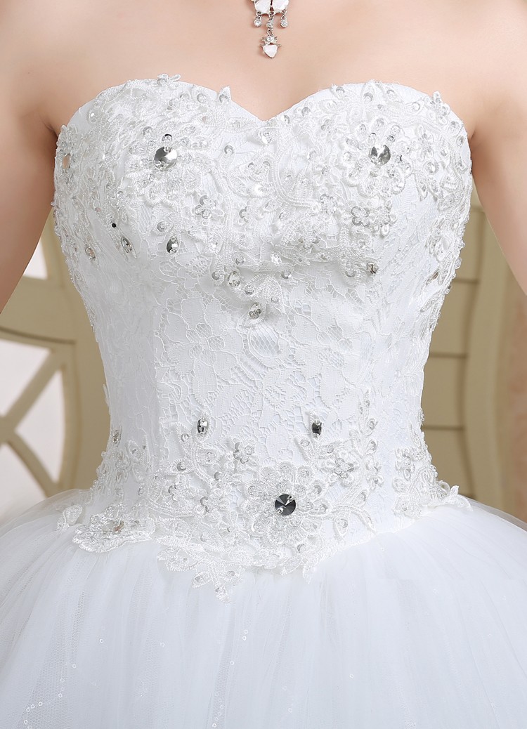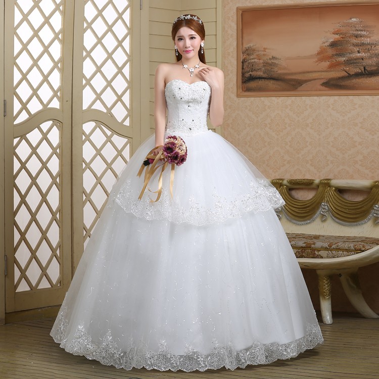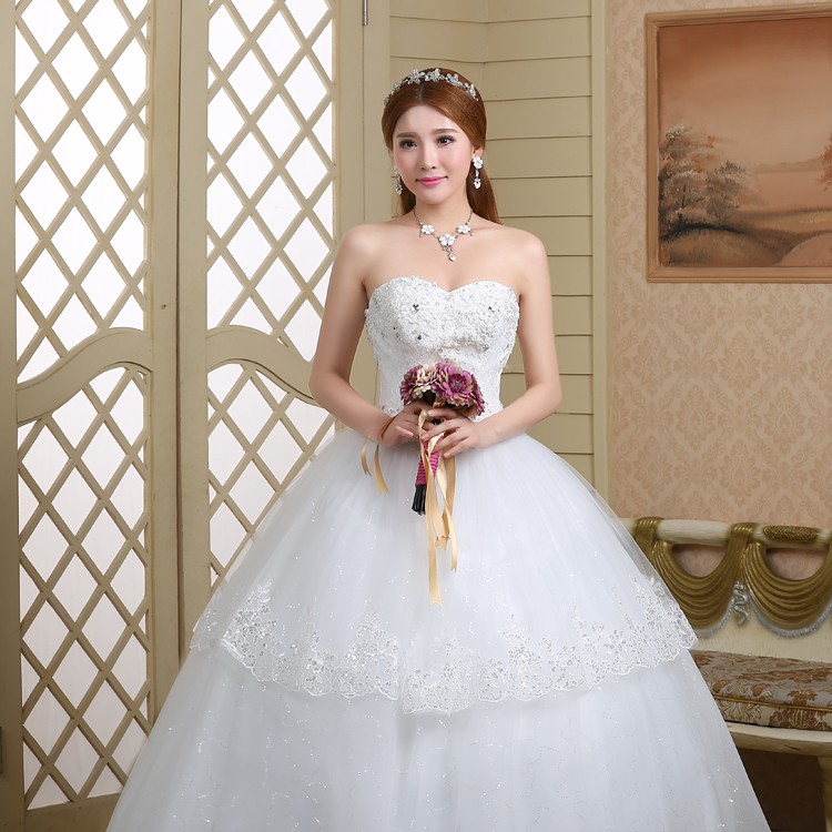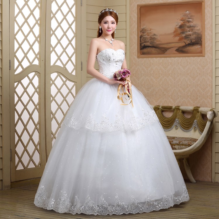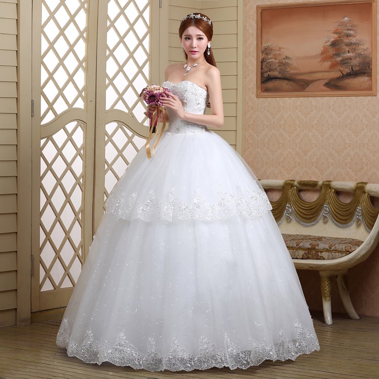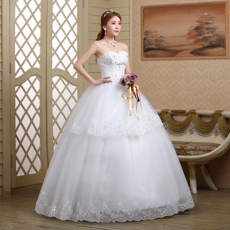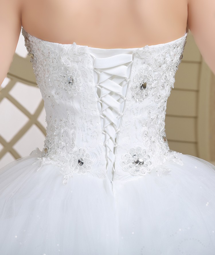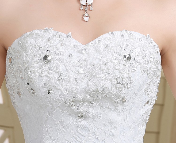 2017新款韩版公主修身显瘦抹胸大码 白色绑带齐地款蕾丝婚纱A26