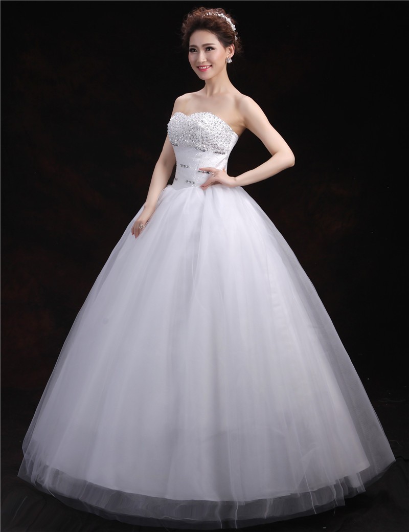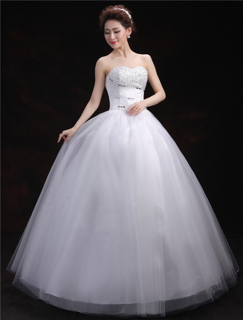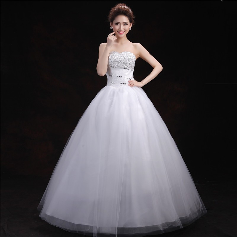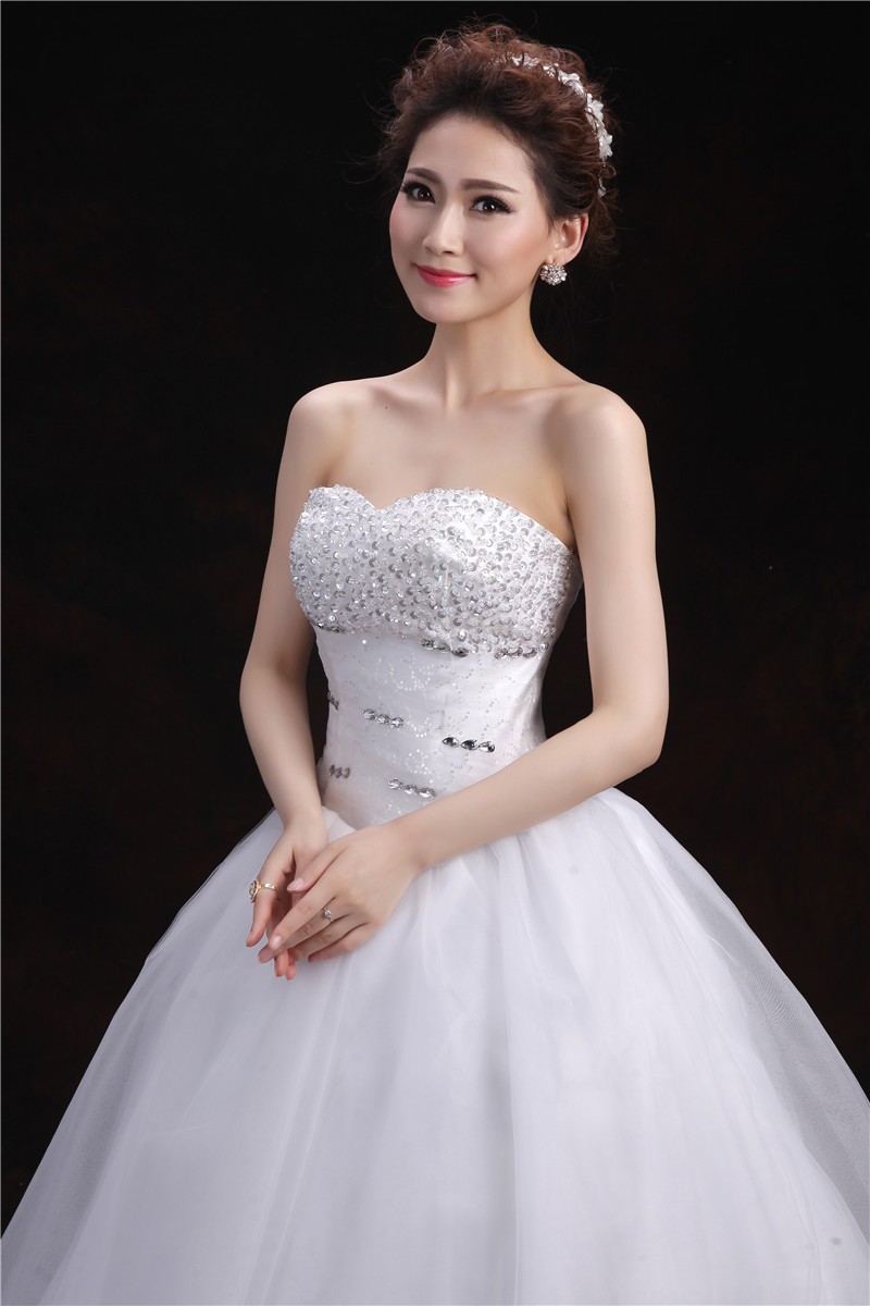 新款2017 韩版婚纱抹胸绑带修身显瘦 镶钻齐地大码新娘婚纱T-22