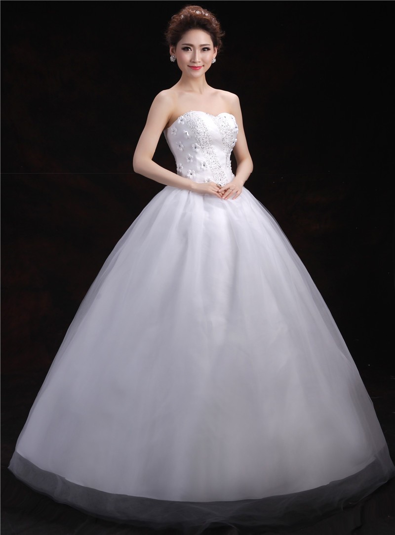 特价2017新款 韩版抹胸绑带花朵显瘦 齐地大码新娘婚纱批发T-23