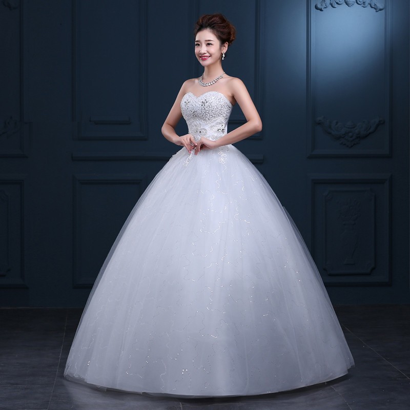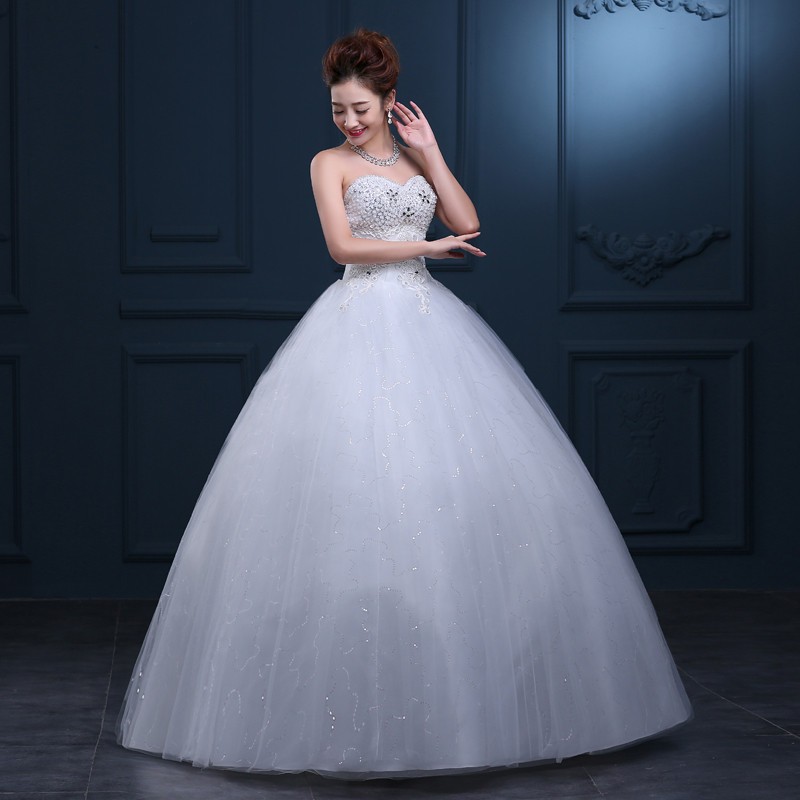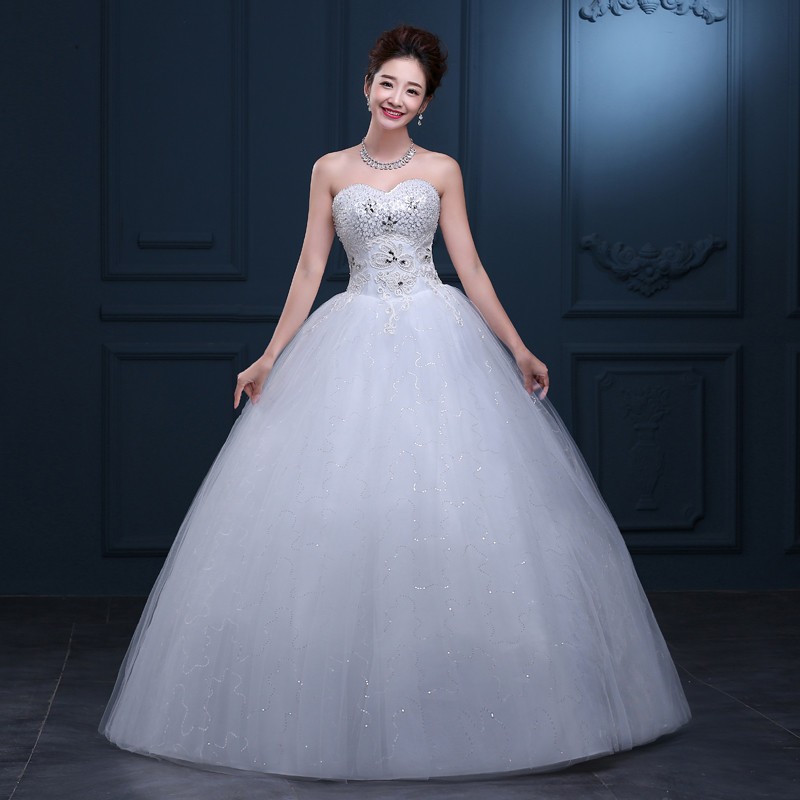 2017新款绑带抹胸婚纱 厂家直销韩式修身显瘦抹胸大码婚纱T30