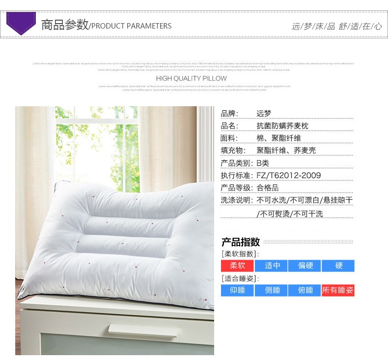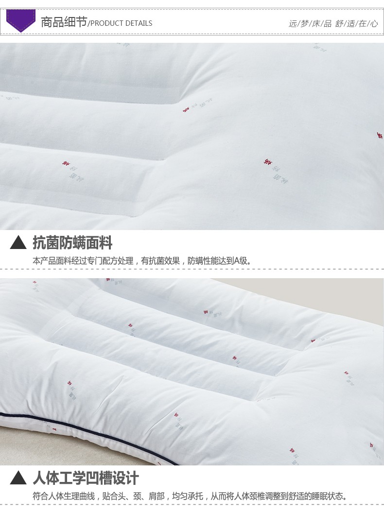 远梦家纺 抗菌防螨荞麦枕 枕头枕芯 护颈枕成人枕 单人定型枕