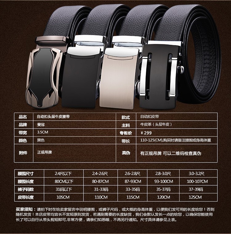 皮带男真皮自动扣 高档纯牛皮商务休闲裤带 青年男士腰带头层牛皮