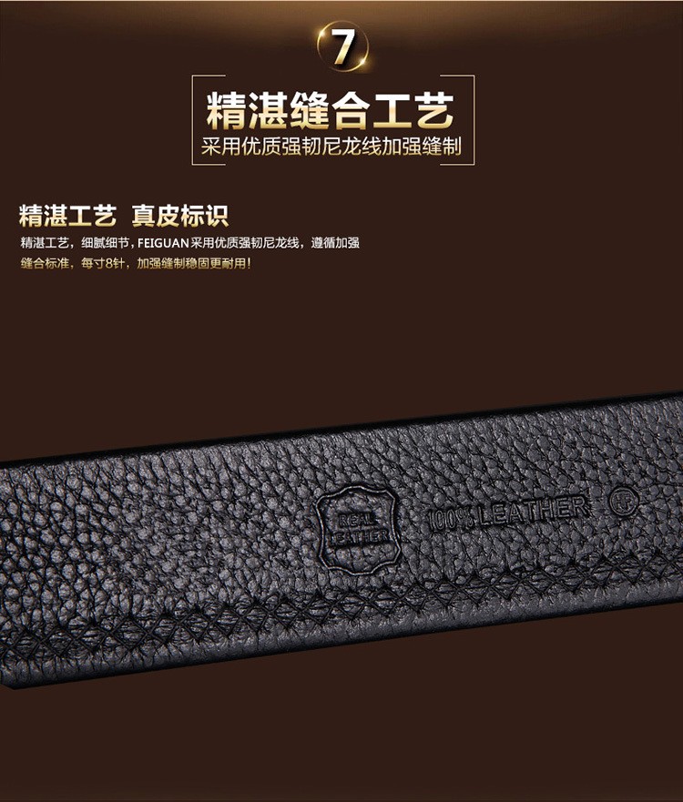 斐冠猎豹行高档牛皮革休闲皮带 青年男士