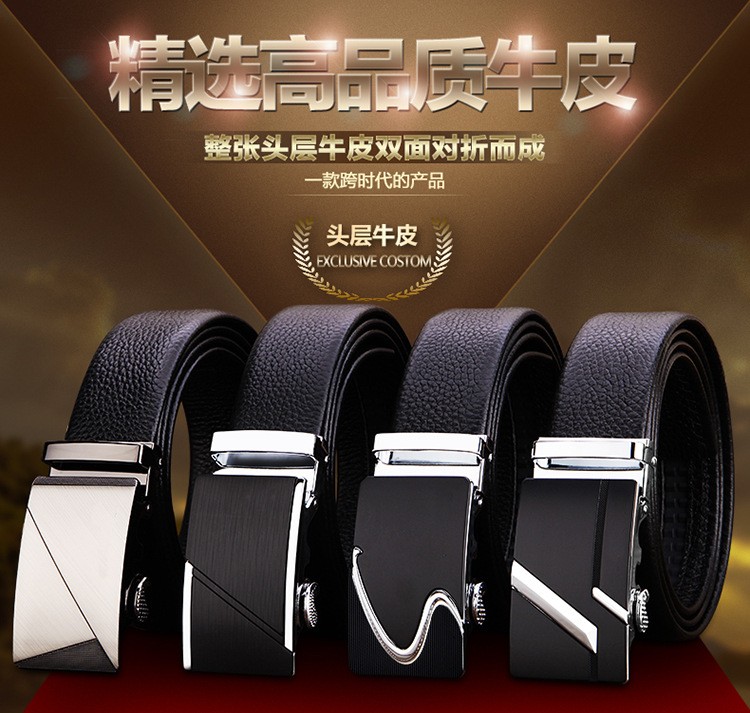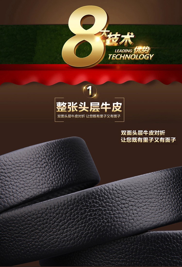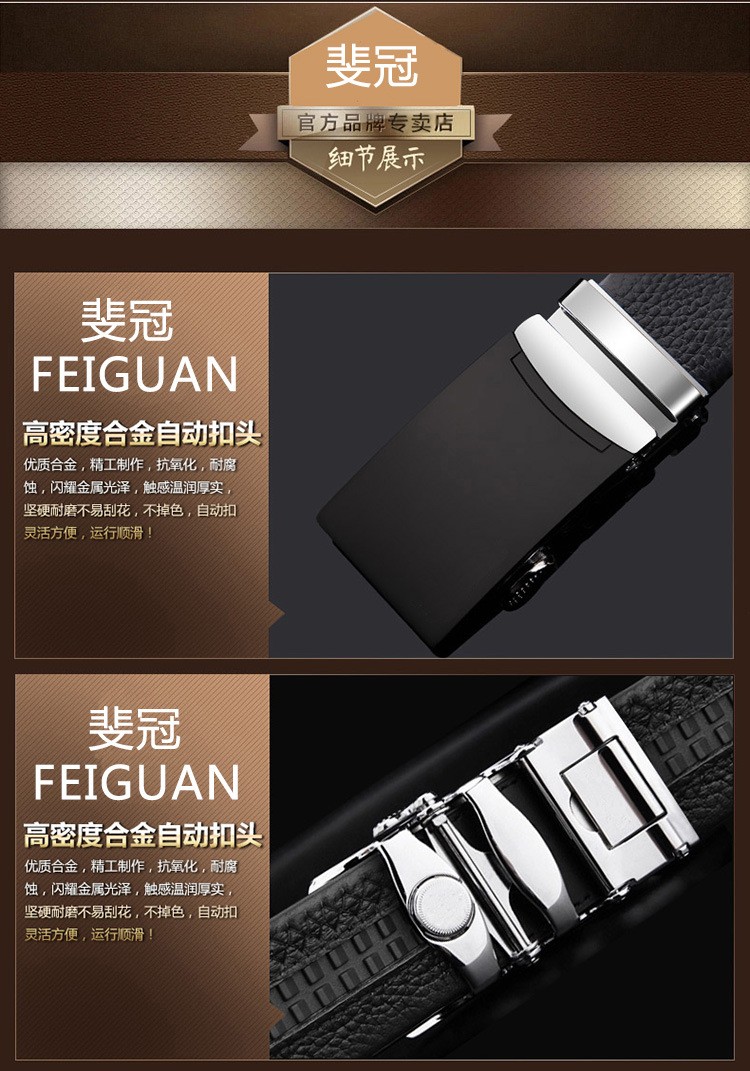 斐冠自动扣高档牛皮革休闲皮带 文明棍型