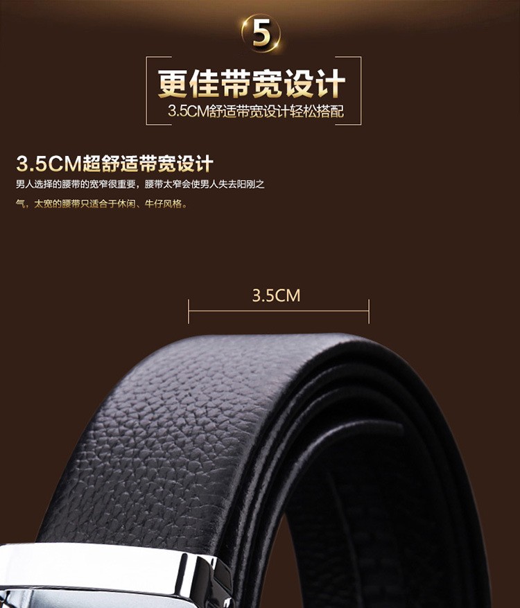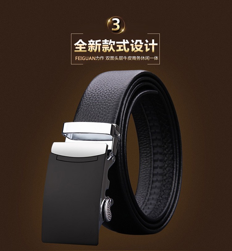 斐冠 高档牛皮革自动扣皮带青年男士商务休闲裤袋