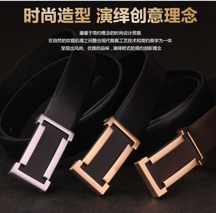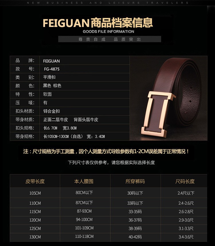 斐冠皮带男士高档牛皮革平滑扣休闲腰带潮流款