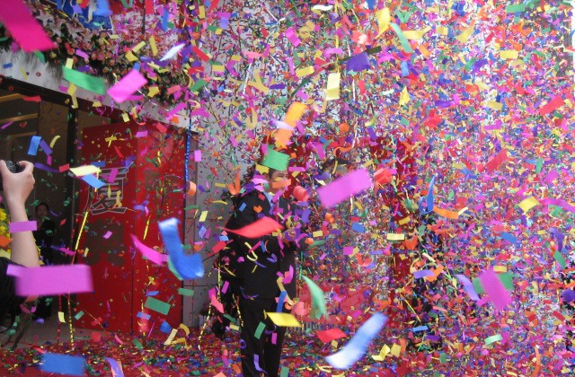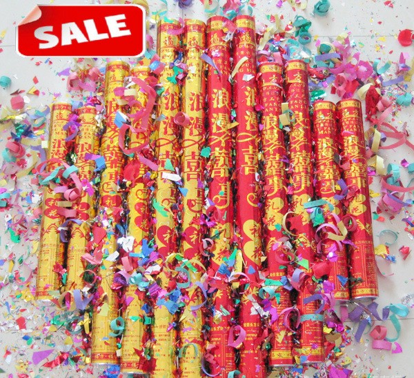 答:礼花按长度有40cm 60cm 80cm的;按填充物有彩纸 亮片 喜字 和玫瑰花瓣的;一般来说,室内用40cm的玫瑰花瓣和喜字的比较好;室外推荐用60cm80cm的彩纸 亮片的