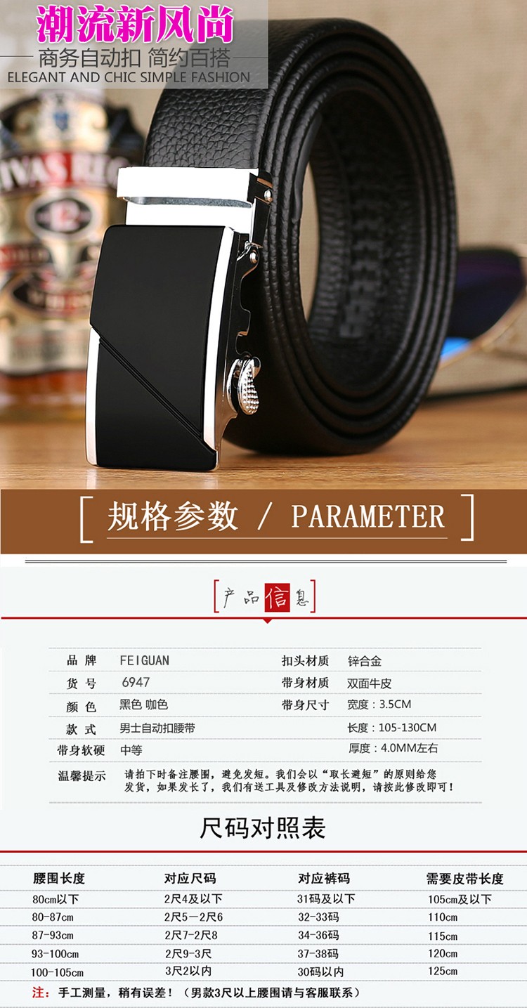 斐冠男士皮带牛皮革高档商务自动扣简约百搭