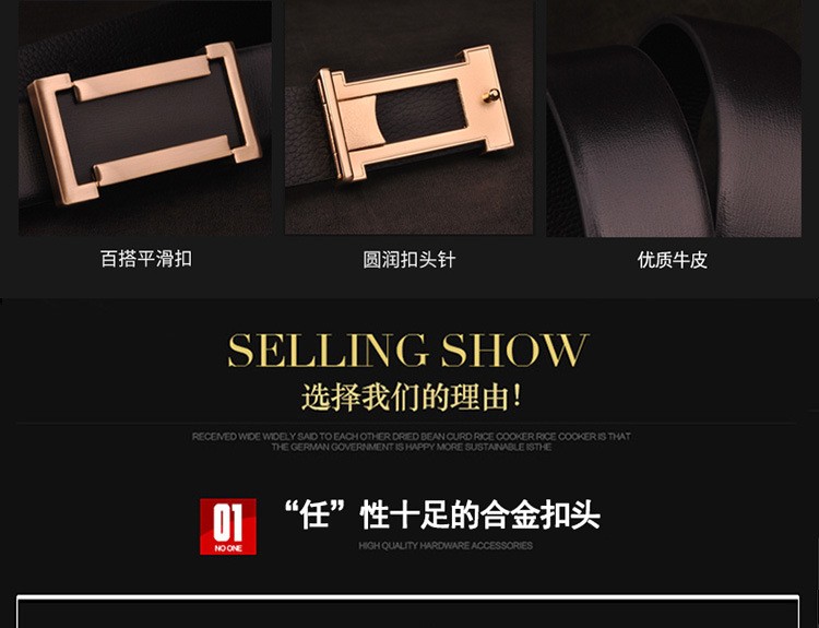 中国龙扣,金银扣头皮带黑棕色