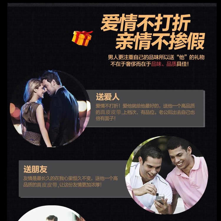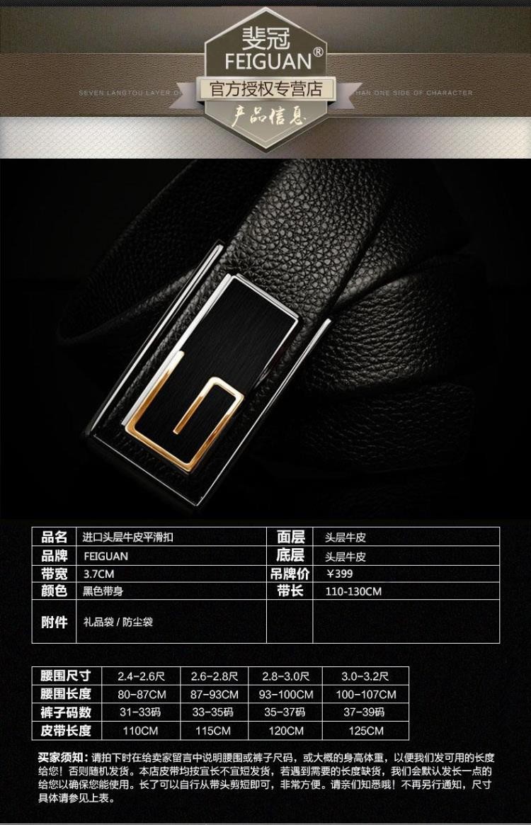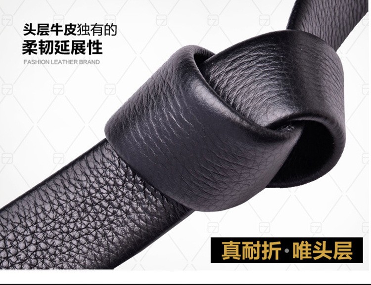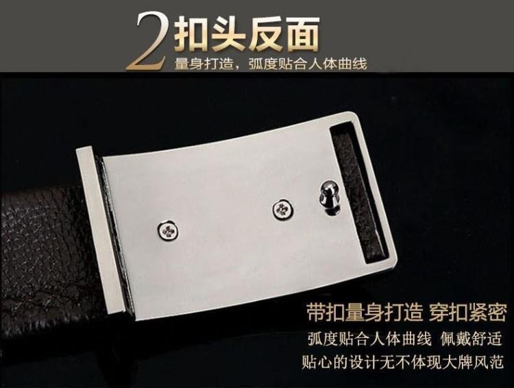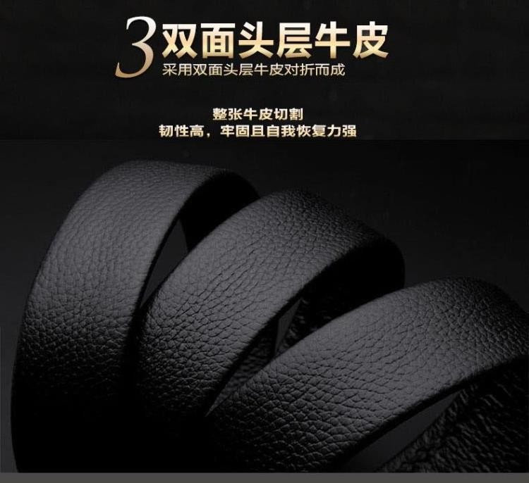 皮带 男士 真皮 平滑扣头层头层纯牛皮商务休闲 腰带猎豹扣头潮男青年皮带