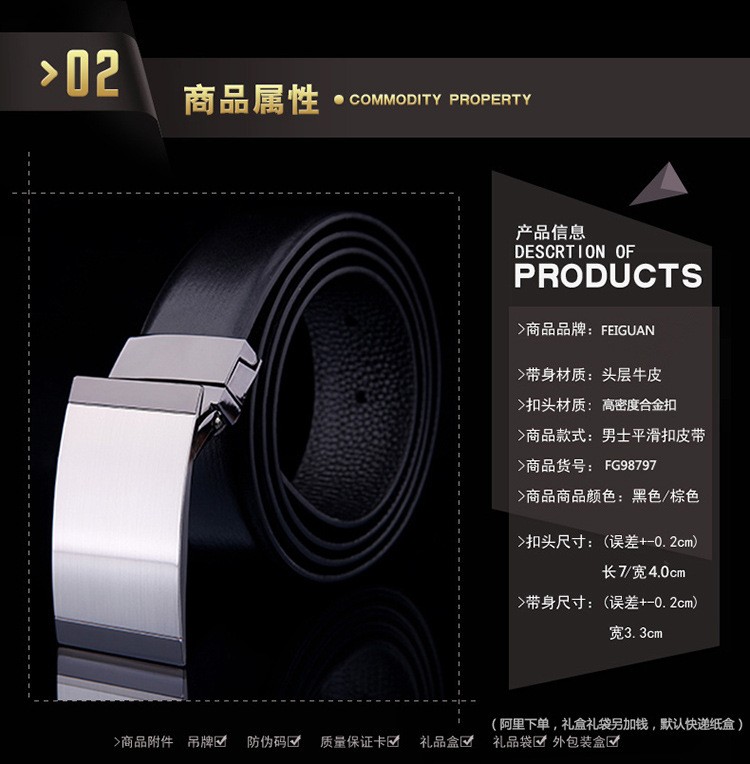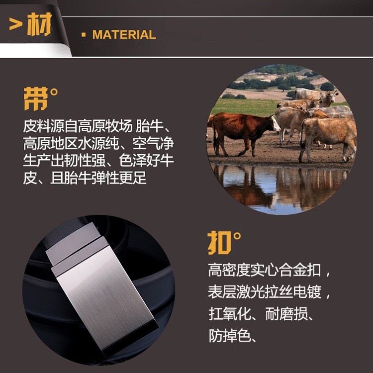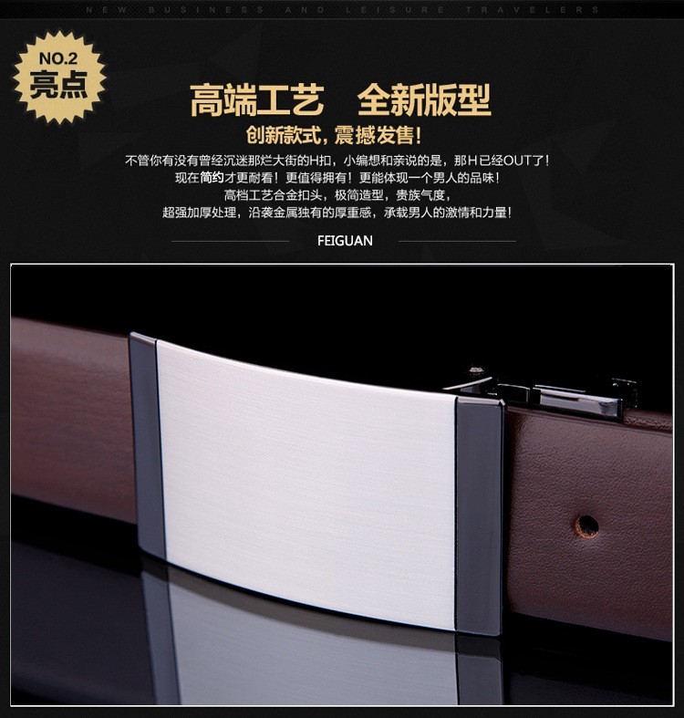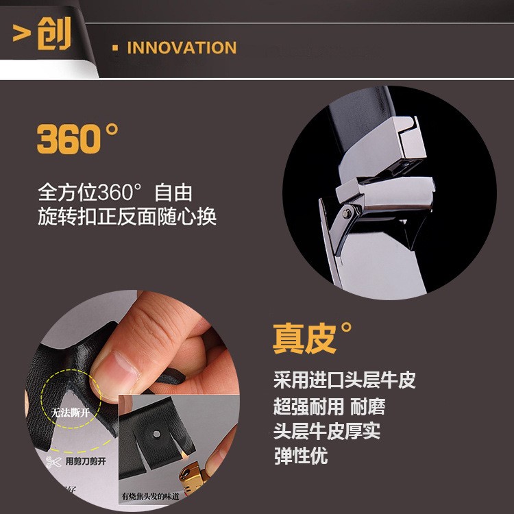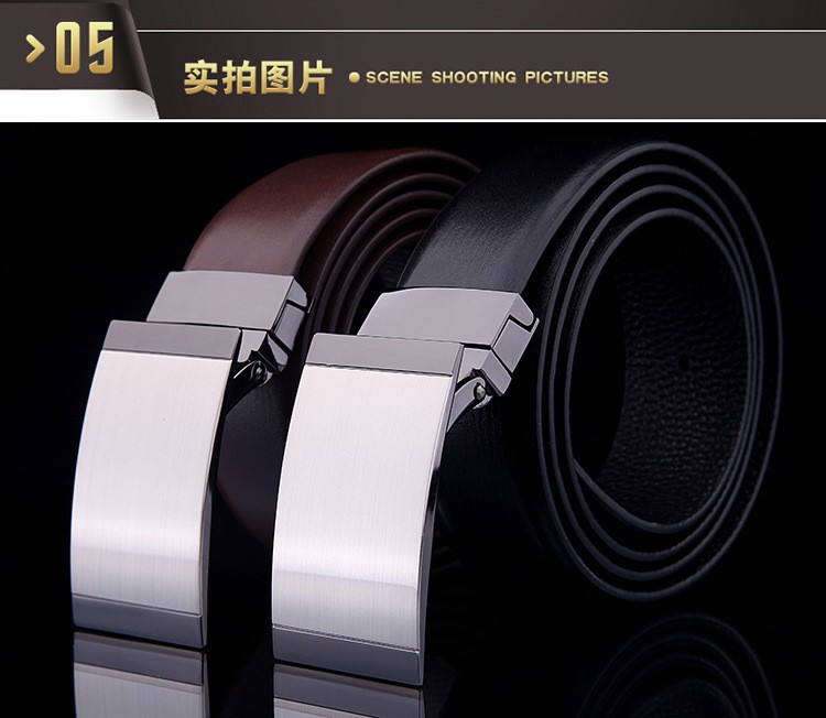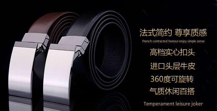 男士皮带真皮平滑扣高档头层牛皮光板旋转扣腰带商务休闲正装裤带