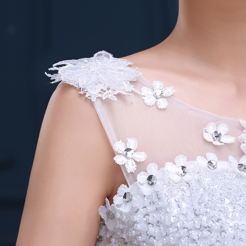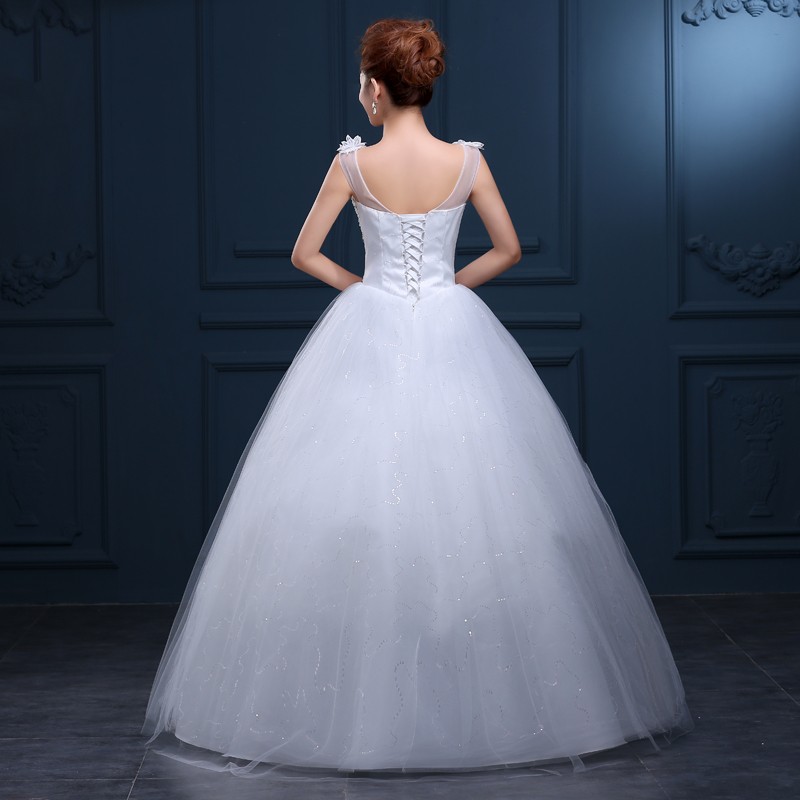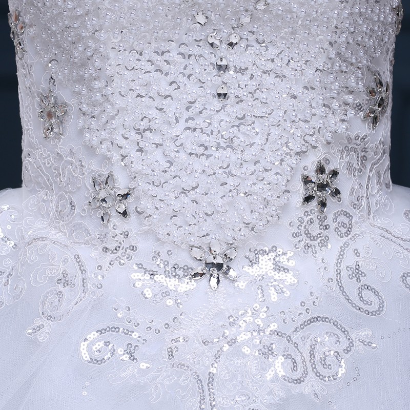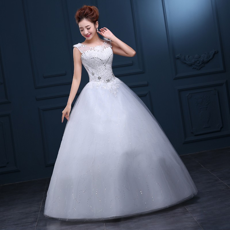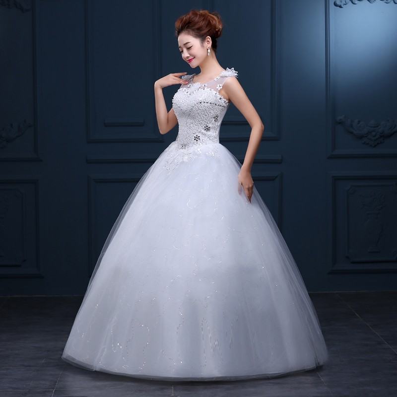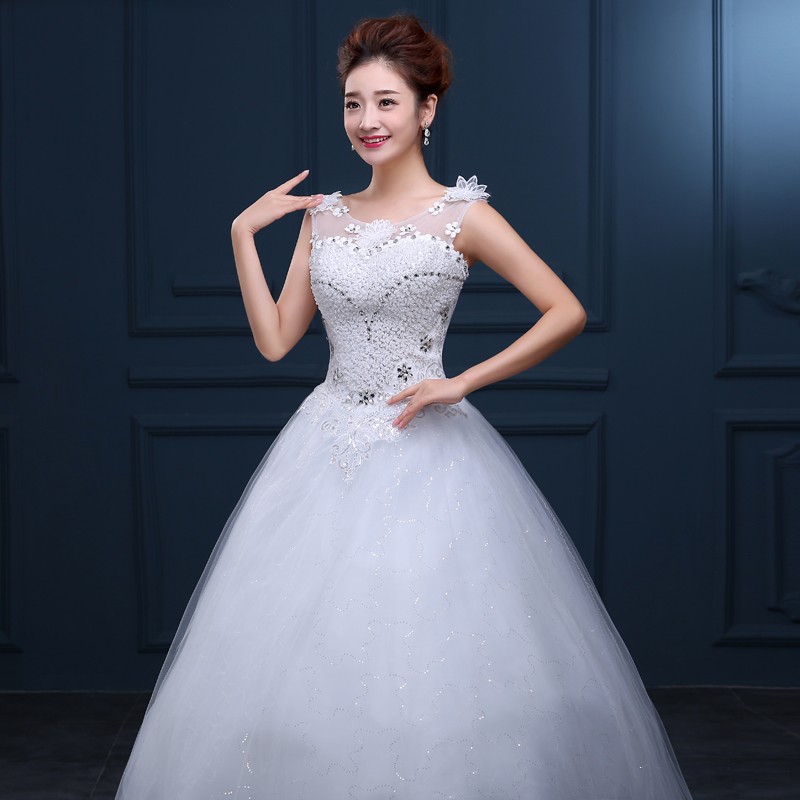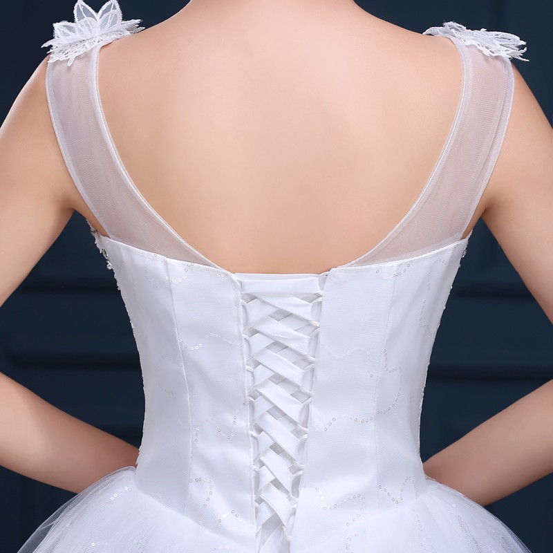 婚纱礼服新款2017 一字肩高档大码婚纱 新款绑带齐地新款婚纱F35