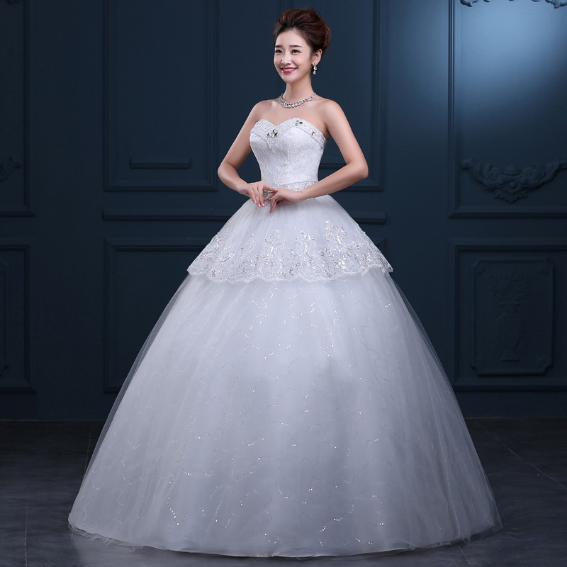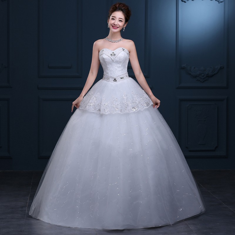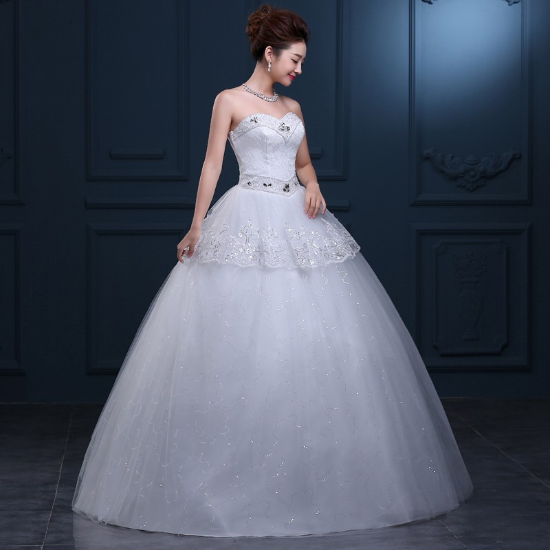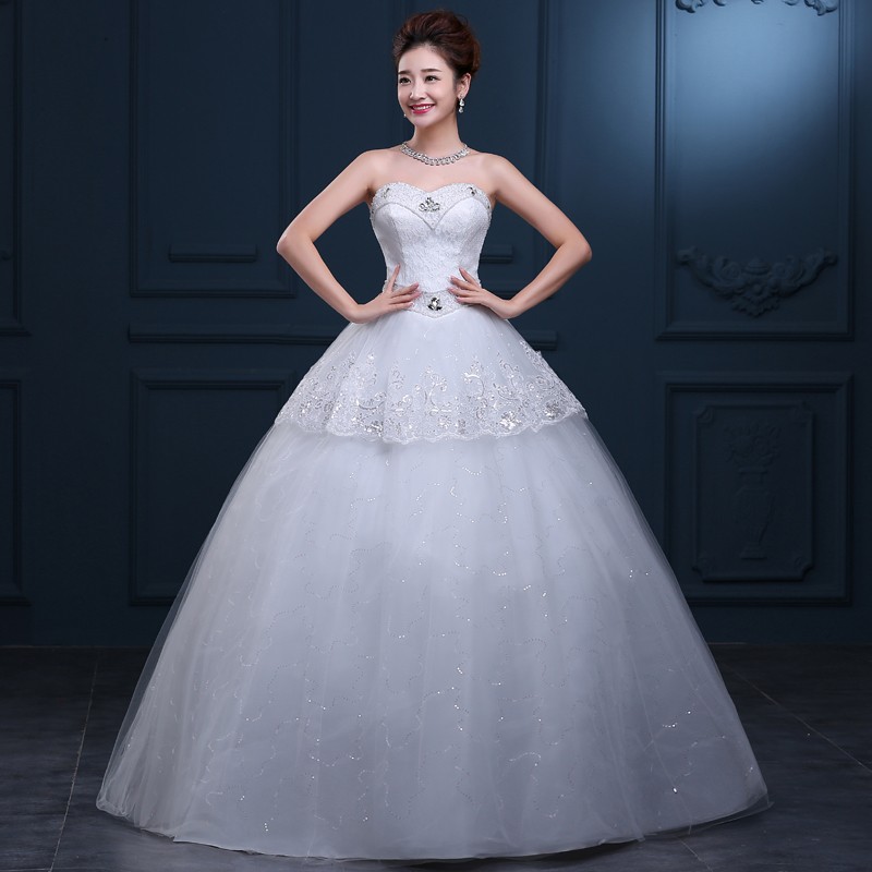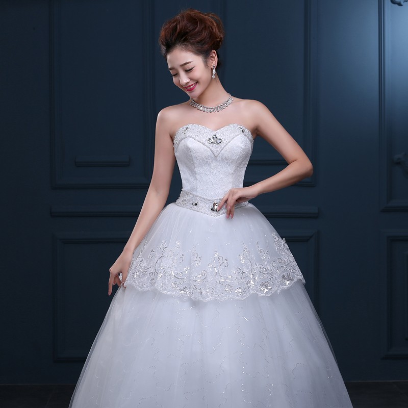 新品 厂家直销批发 2017年新款 中档镶钻白色抹胸蕾丝大码婚纱F40