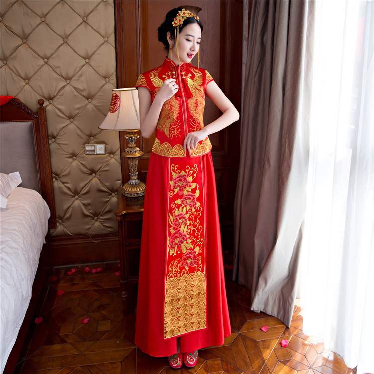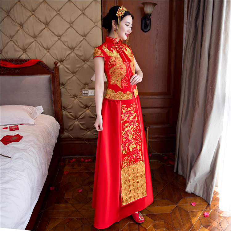 2017夏季新款新娘婚服中式敬酒服秀禾服礼服龙凤褂复古旗袍批发