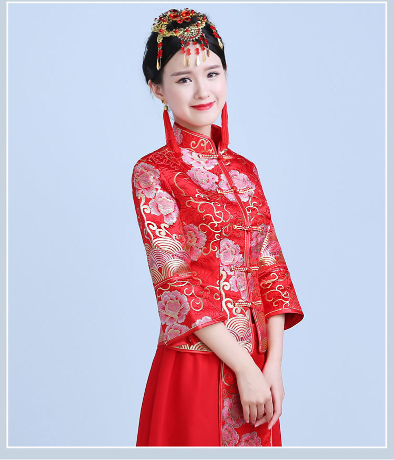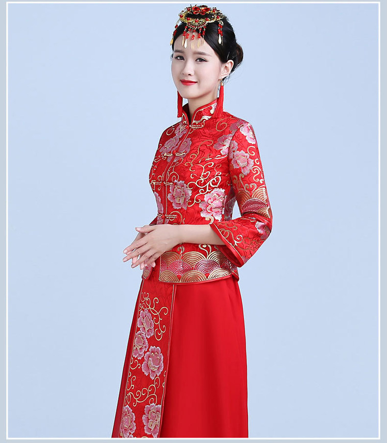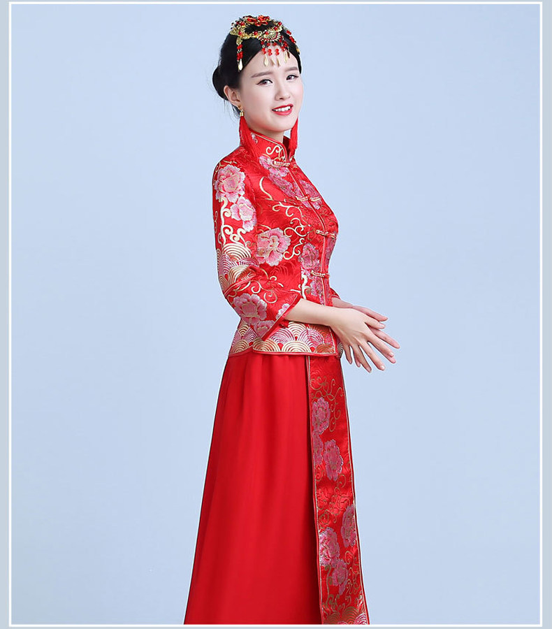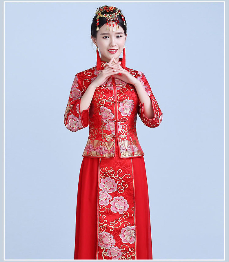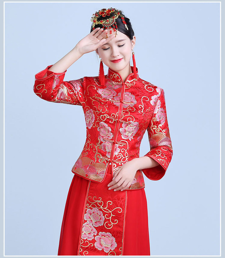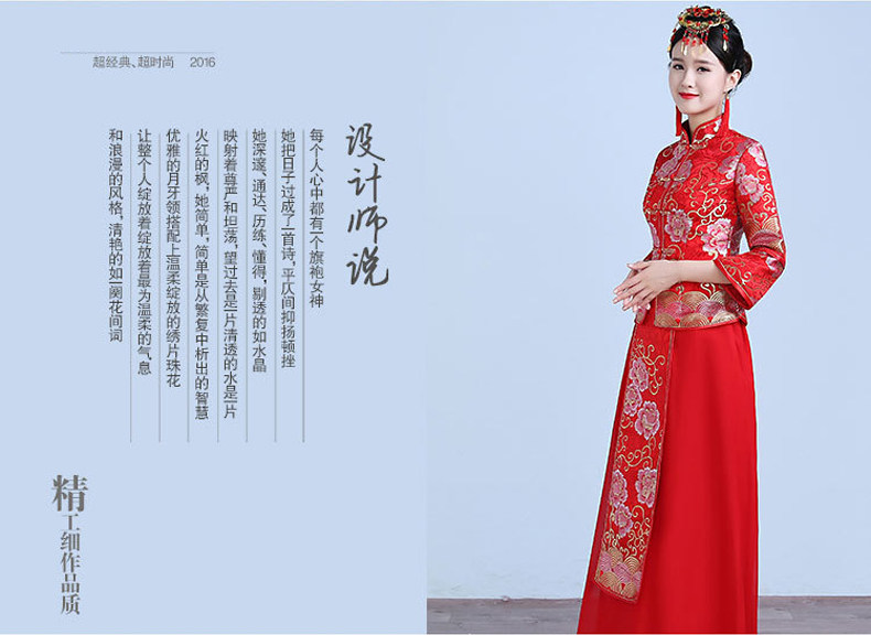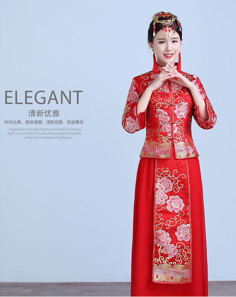新款红色敬酒服新娘结婚中式礼服秀禾服显瘦长旗袍秋冬款回门嫁衣