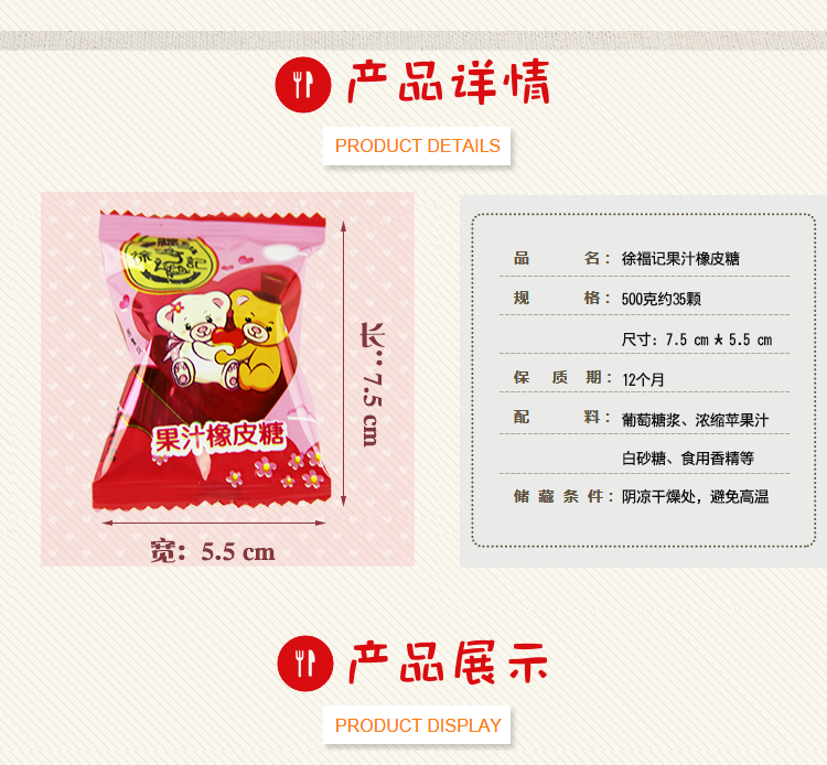 徐福记果汁橡皮糖花心熊 结婚喜糖 散装500g