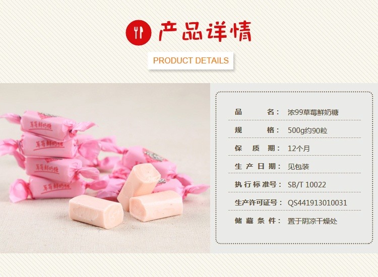 徐福记浓99特浓鲜奶糖 原味/草莓味 结婚喜糖 散装500g