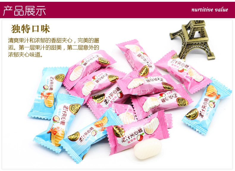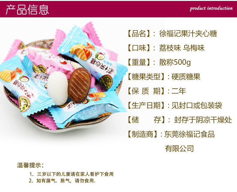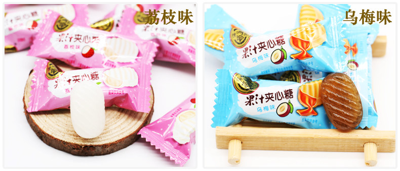 徐福记果汁夹心糖 荔枝味/乌梅味 结婚喜糖 散装500g 约90颗